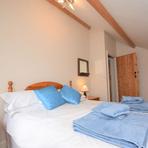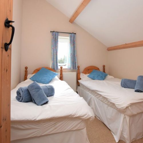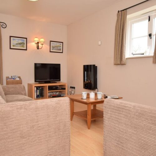 Guests entering the cottage will find an open-plan lounge/kitchen/diner on the first floor with French doors out to the garden. The lounge area features comfy sofas arranged around a Smart TV and DVD and a flame effect electric fire. The kitchen is well-equipped with everything required to dine in including electric oven and hob, microwave, fridge/freezer and to help with the cleaning, a handy dishwasher, there is also a washer/dryer and dining area with table and chairs. Ascending the stairs to the first floor there are two bedrooms, the first is a double with TV/DVD while the second is a twin, again with TV/DVD. Finishing the accommodation is a generous bathroom with shower over bath and WC.