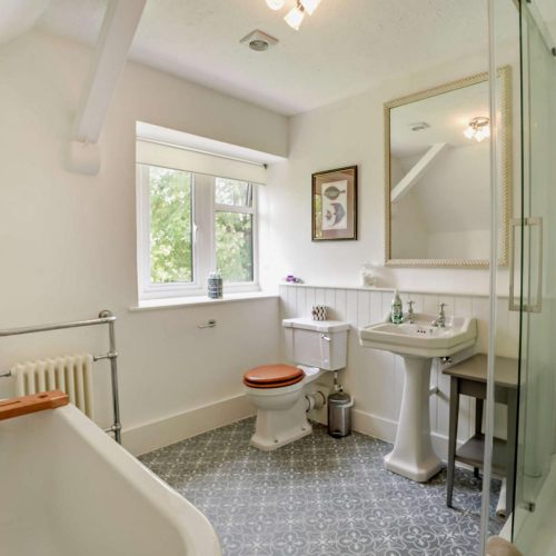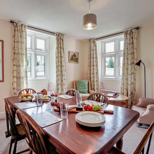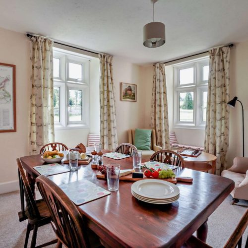 Enjoy the views across to the church as you drive through the heart of the estate. The cottage is set within its own grounds overlooking the church. The open stone porch with original stone arch has a church pew for you to take a seat whilst you remove your muddy boots, and is also stacked with wood for the wood burner. Open the solid wooden door into the wide entrance hall, with original wooden panelling and high ceilings, you will find a cosy lounge to the left, where you can sink into the sofas and relax with friends in front of the wood burner, there is also a smart TV/DVD and a bluetooth speaker perfect for a good movie. Across the entrance hall is the dining room, with a solid wooden table and chairs, set for six along with original cupboards. Also, a great space for children to get away and enjoy a board game, or simply relax in the wooden window seats with a good book. The kitchen is set to the rear of the cottage and is well-equipped with electric oven and hob, Dualit capsule coffee machine, microwave and dishwasher, and a table and chairs for a relaxed breakfast and a wooden dresser stocked with everything you may need. There is also a fridge/freezer situated in the lobby just off the kitchen. There is a ground floor WC, with a utility area housing a washer/dryer and small fridge. So, when the day is done climb the stairs to the first floor, where you will find the three bedrooms. A king-size with feature fireplace, a super-king-size zip-and-link (which can be made up as a twin on request) with garden views and a twin bedroom (which can be made into a king size on request). All bedrooms are furnished with luxurious cotton bedlinen. Also, on this floor is a bathroom with bath and WC and a shower room with shower and WC.
