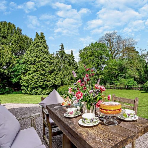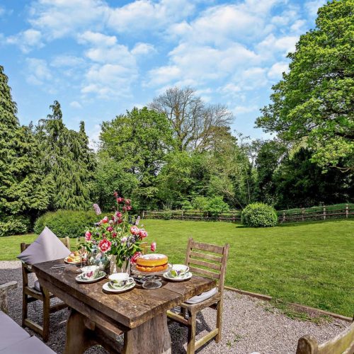 The cottage enjoys an open aspect onto the estate, with a large enclosed garden which is perfect for children and dogs, the grounds are laid to lawn with plenty of sunny garden benches and a patio with table and chairs and charcoal BBQ to enjoy. There is ample off-road parking and secure storage for bicycles available.