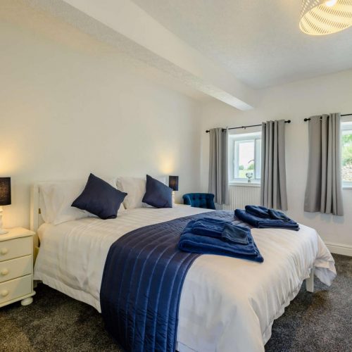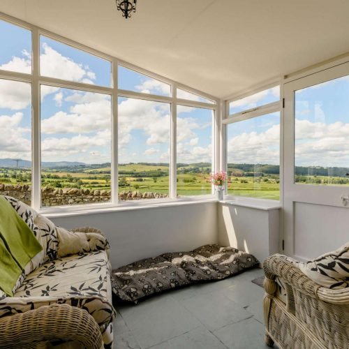 As you enter the property you will find yourself in the hallway where there is coat and boot storage. The open-plan lounge/kitchen/dining area is off the hall and offers a great social space to catch up with lovely parquet flooring, a cosy wood burner and original beams. There is a Smart TV in both the lounge and kitchen area. The kitchen offers dining for the whole party and everything you will need to enjoy a hearty breakfast or an evening meal. There is access out onto the garden from the lounge area. Off the lounge, you will find a sunroom, which has stone flooring and is a practical space to relax or for muddy dogs after a long walk. The views from this room are breathtaking, it is also a great place to sneak off to get away from it all with a good book or a glass of wine! Head back through the lounge and into the hallway, and at the bottom of the stairs you will find a bathroom. Up the staircase on the first floor you will find the second bathroom, and a couple more steps lead to the main landing. Here you will find the three beautiful bedrooms – one double, one king-size and a twin, all with lovely countryside views.