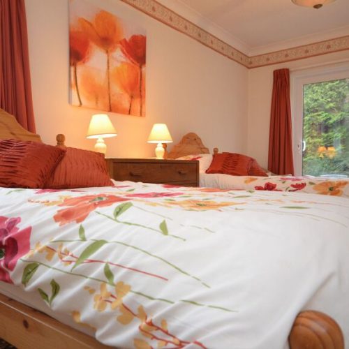 Entering the bungalow; the kitchen is equipped with an electric oven and hob, washing machine, dishwasher, fridge and microwave and fridge freezer, there is a step up into the separate dining room. In the light and airy lounge/diner relax in front of the open fire (first basket of logs included thereafter at cost), TV and DVD, CD, patio doors leading to the garden. A double bedroom and twin bedroom with doors leading to the patio area. The bathroom comprises of bath with shower over, WC.