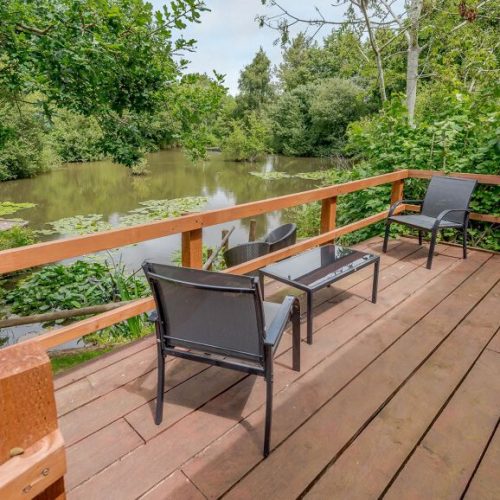 Sit out and enjoy the views overlooking the water, from the lodges decked balcony. Chose either the patio furniture here or head down to the lower part of this outdoor area, where you have access to some more rattan furniture for a more up and close experience of those carp jumping in the water. On-site allocated parking is available through gated access. Private fishing is available for a fee payable direct to the owner. There is also the use of a shared utility area with a washer/dryer.