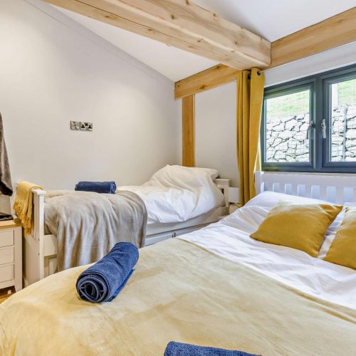 After a busy day exploring this beautiful corner of the UK, head back to your lodge to unwind and spend some quality time with friends and family. Make your way inside and step into the spacious, open-plan lounge/kitchen/dining area. Enjoy a movie on the Smart TV from the comfortable corner sofa and spend cosy evenings beside the fantastic wood burner. The fully equipped kitchen has everything you need for a self-catered break, allowing you to make use of some of the wonderful local produce available. The area is completed with a dining table that will comfortably seat your whole group ensuring you can enjoy a meal together. Continue through the lodge and you will find the two bedrooms, one with a double and single bed, and a further en-suite double room. This setup is ideal for couples travelling together and families who can utilise the additional single bed. Next to the bedrooms, you will find the family-sized shower room.