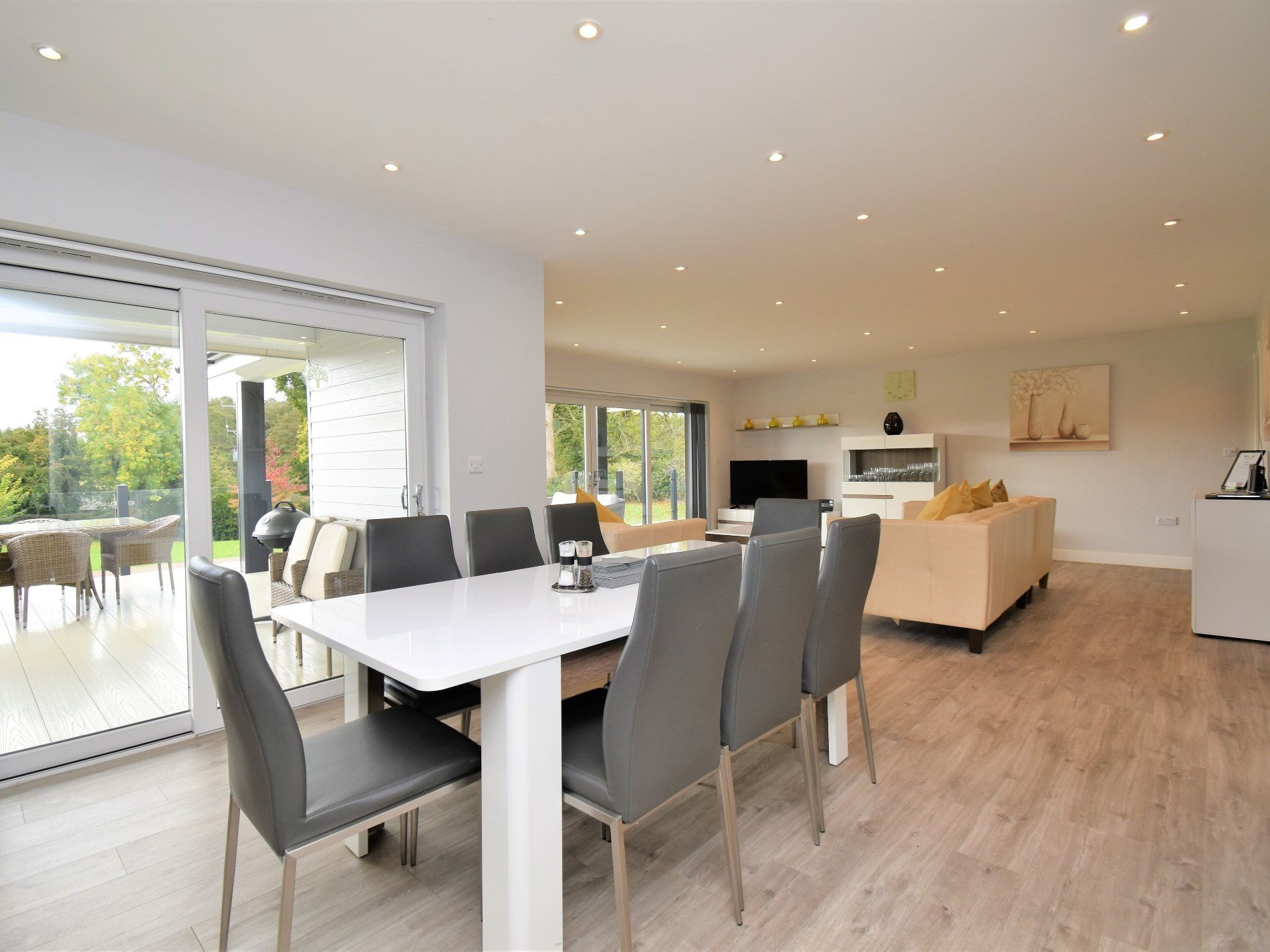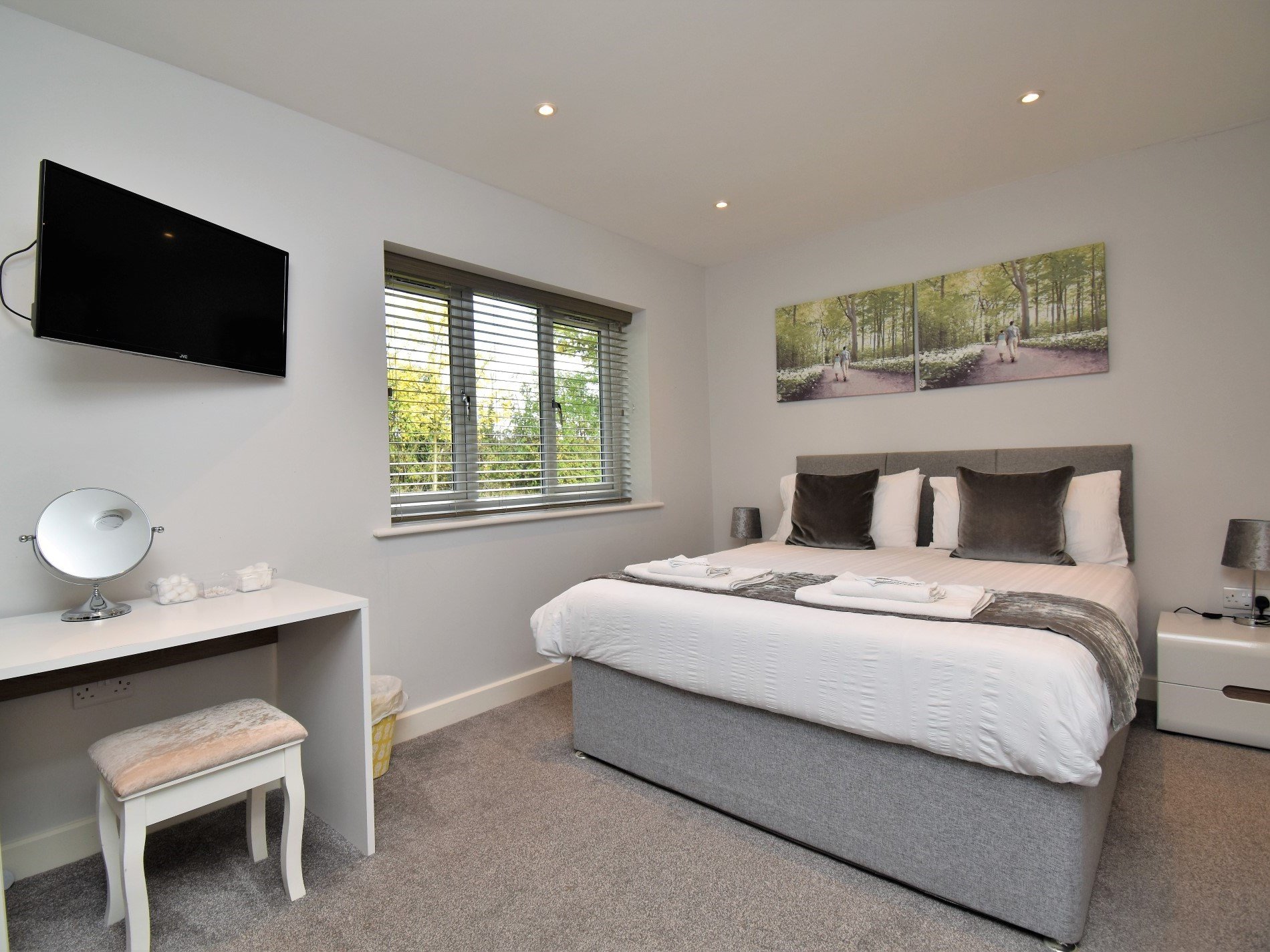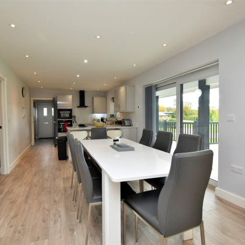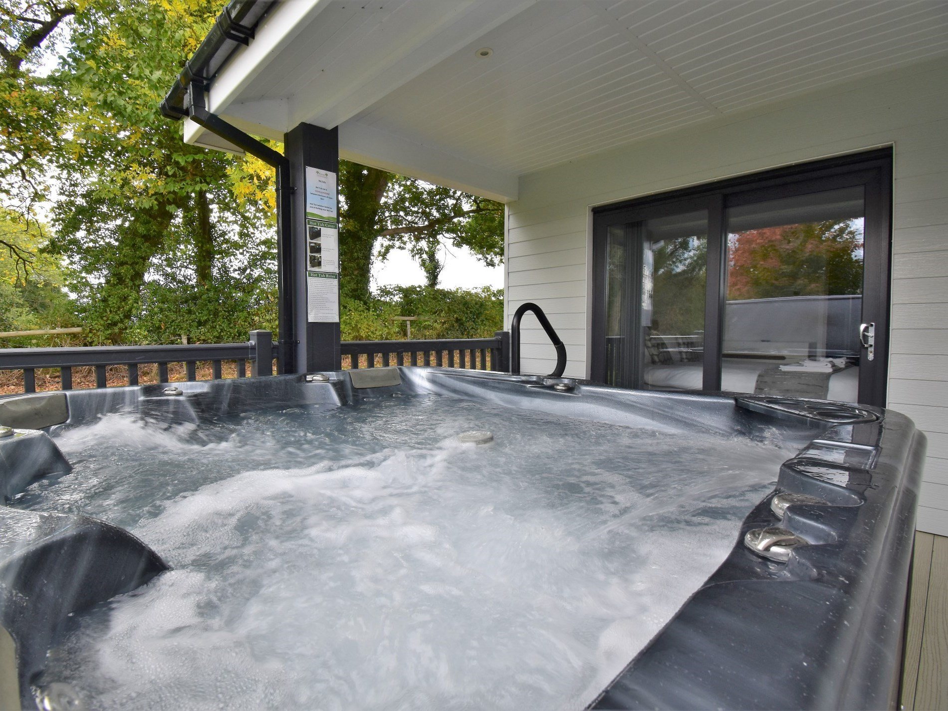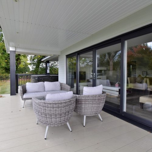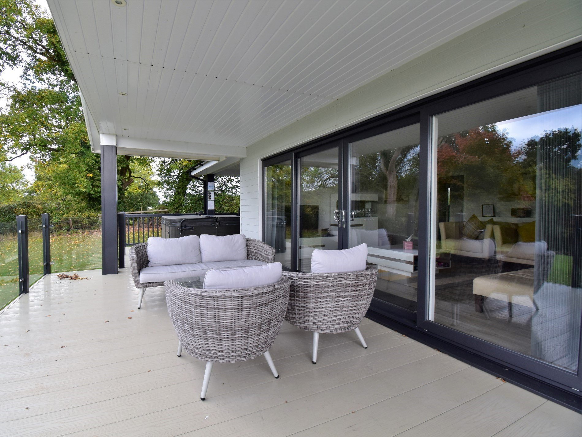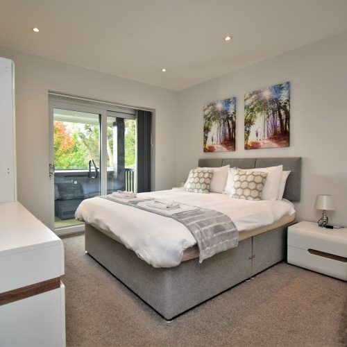 Drive into this lovely development and round to your luxury lodge built in 2018, in a prime corner location. Walk into the hall with the useful utility room on your left with washer/dryer and plenty of room for your coats and walking boots. Continue to the open-plan lounge/kitchen/diner with all the little luxuries for your stay and lovely views from the picture windows. The kitchen area is well-equipped with all the thoughtful little extras alongside the electric oven and hob, microwave, fridge/freezer and dishwasher. The dining table is perfectly positioned by the French doors to gather round for a meal, open the doors and let the outside in. After dinner relax in the lounge on the comfy sofas, plan your holiday activities, listen to music, watch a film on the Smart TV/DVD or lose yourself in a good book. The bedrooms have been designed for a good night’s sleep, you can choose from four luxurious bedrooms, a king-size with TV, en-suite shower room and WC and doors to the veranda with hot tub, a further two king-size bedrooms with TVs and en-suite shower rooms and WC, or the twin zip-and-link bedroom (which can be made up as a super-king-size on request) with TV and en-suite Jack and Jill bathroom with shower over bath and WC, which is also accessed from the hallway. The property has been thoughtfully designed and would be ideal for two families sharing as there are two hallways accessing two bedrooms each allowing for privacy during your stay.