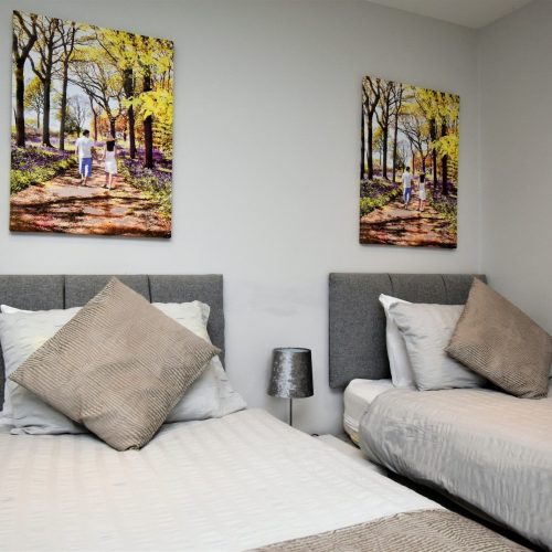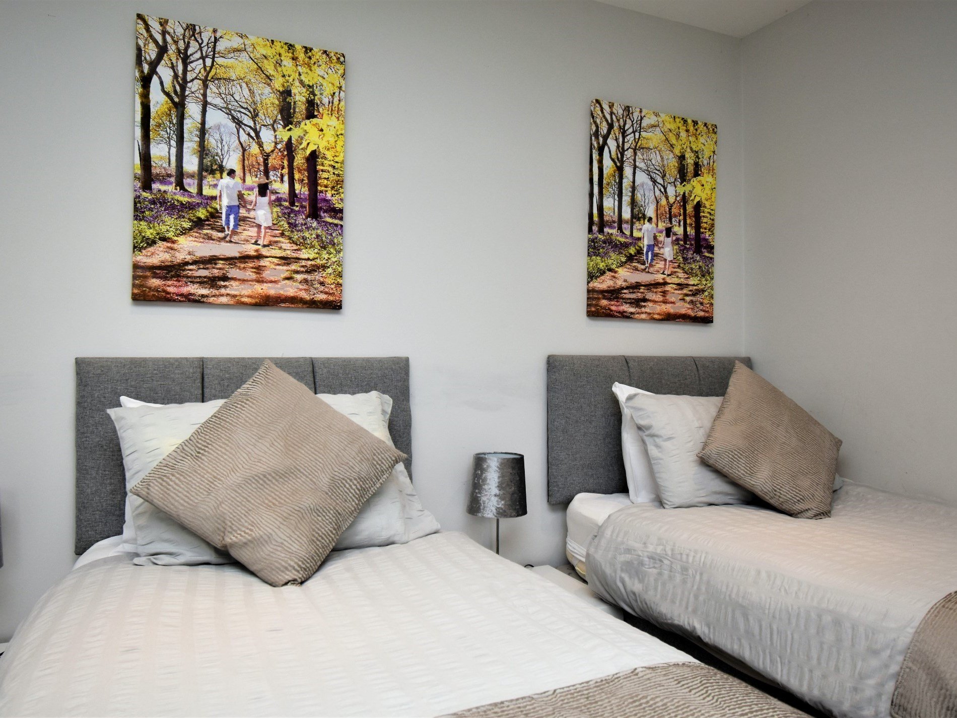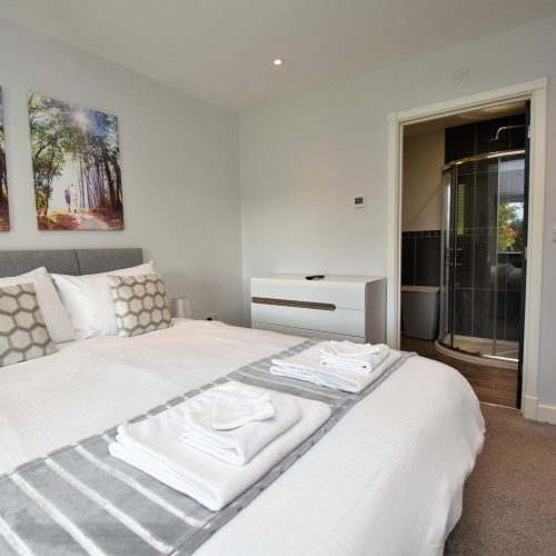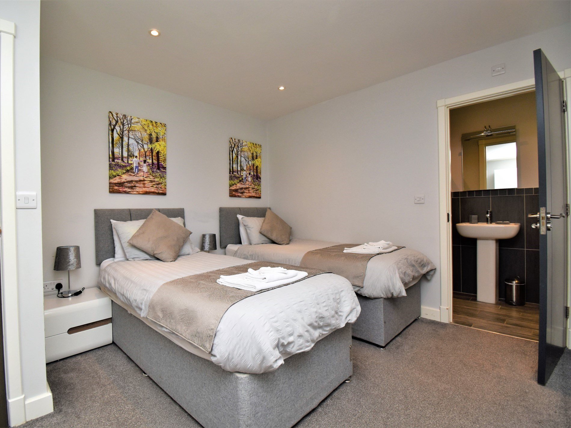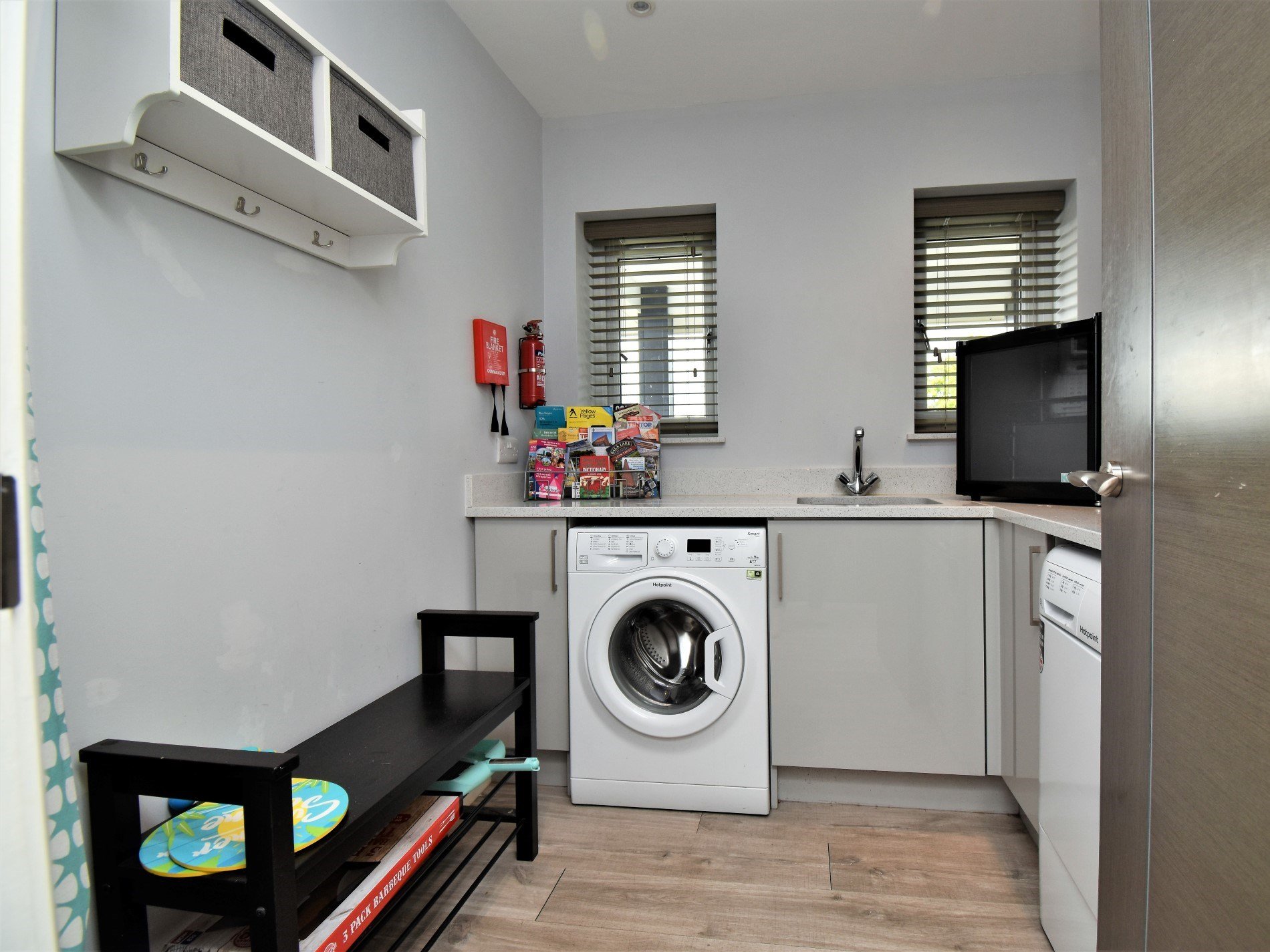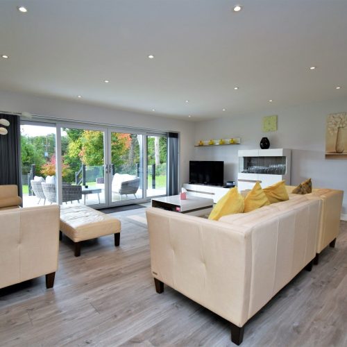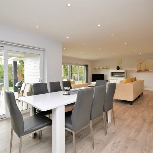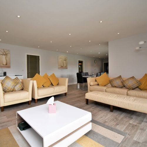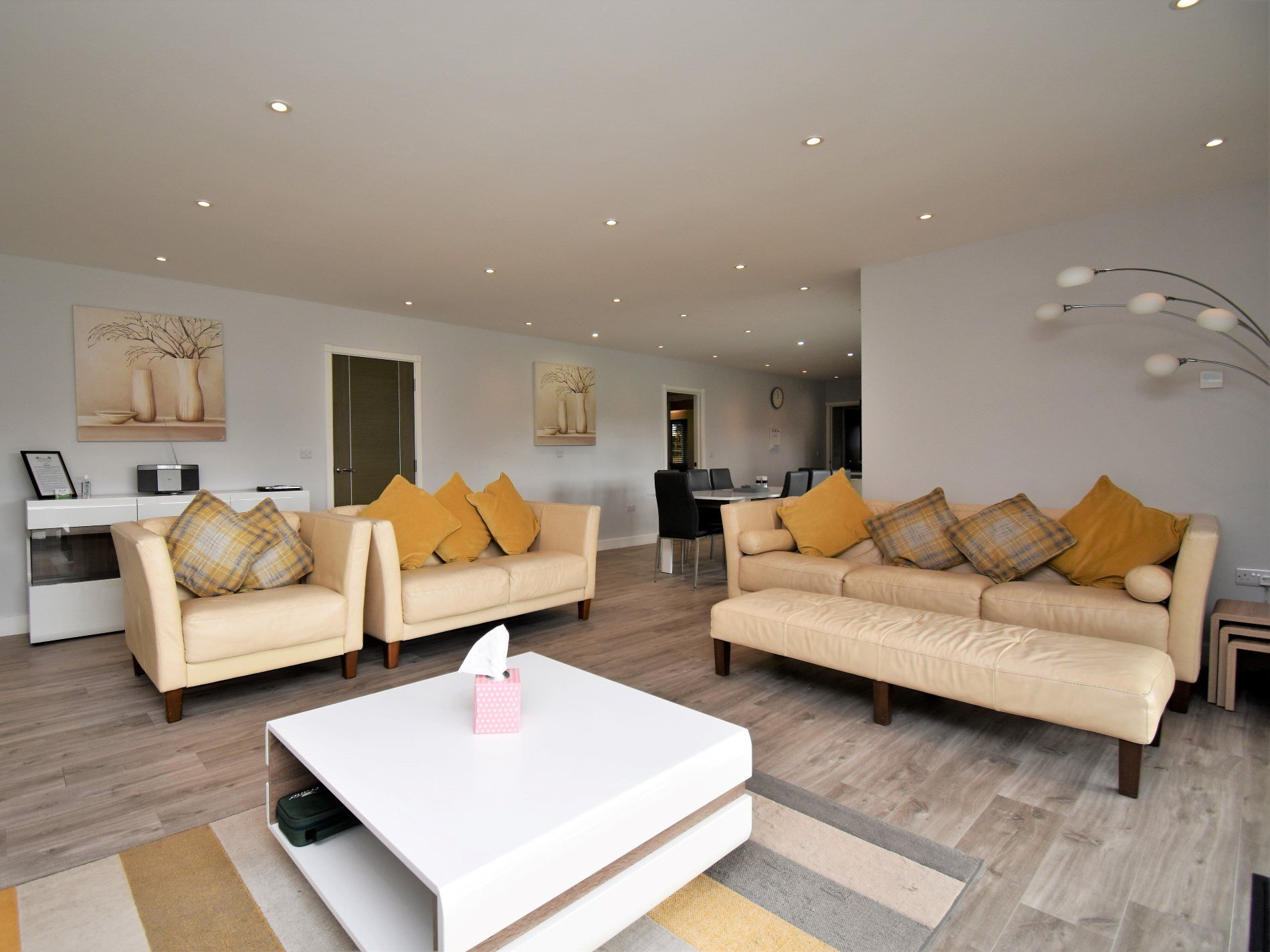 Drive into this lovely development and round to your luxury lodge built in 2018, in a prime corner location. Walk into the hall with the useful utility room on your left with washer/dryer and plenty of room for your coats and walking boots. Continue to the open-plan lounge/kitchen/diner with all the little luxuries for your stay and lovely views from the picture windows. The kitchen area is well-equipped with all the thoughtful little extras alongside the electric oven and hob, microwave, fridge/freezer and dishwasher. The dining table is perfectly positioned by the French doors to gather round for a meal, open the doors and let the outside in. After dinner relax in the lounge on the comfy sofas, plan your holiday activities, listen to music, watch a film on the Smart TV/DVD or lose yourself in a good book. The bedrooms have been designed for a good night’s sleep, you can choose from four luxurious bedrooms, a king-size with TV, en-suite shower room and WC and doors to the veranda with hot tub, a further two king-size bedrooms with TVs and en-suite shower rooms and WC, or the twin zip-and-link bedroom (which can be made up as a super-king-size on request) with TV and en-suite Jack and Jill bathroom with shower over bath and WC, which is also accessed from the hallway. The property has been thoughtfully designed and would be ideal for two families sharing as there are two hallways accessing two bedrooms each allowing for privacy during your stay.