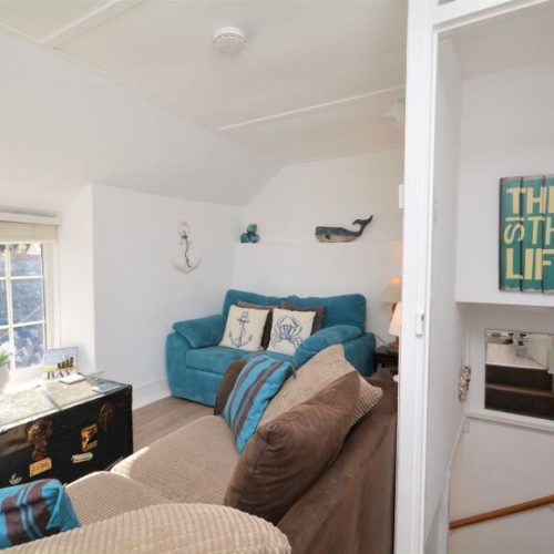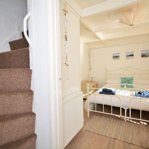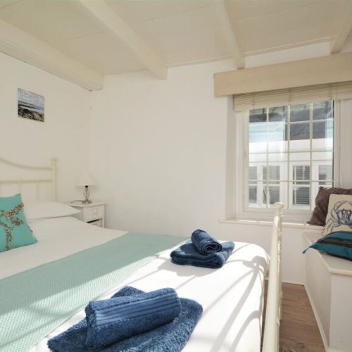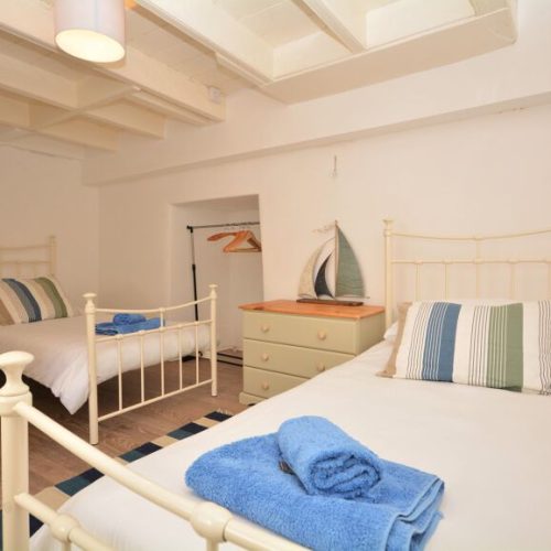 Once a bakery, this traditional Cornish cottage still retains much of its original charm with cobbled walls, low ceilings and narrow staircases, giving a real sense of Cornish living. Heading through the undercover walkway and up the original slate external steps you will enter this reverse level property into the porch. From the porch, a few steps up take you through to the kitchen/diner which is fully equipped for all your holiday home cooking requirements. The kitchen area comprises of an electric oven and hob, microwave, fridge with ice compartment and a washing machine. From the kitchen, a few steps up lead you into the cosy lounge, a characterful room with comfortable furnishings, TV/DVD and looking over the rooftops enjoying harbour and coastal views. The perfect place to kick back and relax after a day’s activities whilst planning your next adventure. The bathroom with shower over bath and WC is located just off from the porch area. From the lounge, steep cottage style stairs lead you to the middle floor and the master bedroom, a king-size that has been stylishly furnished. A further narrow staircase down leads to the ground floor and twin bedroom, suitable for adults or children.