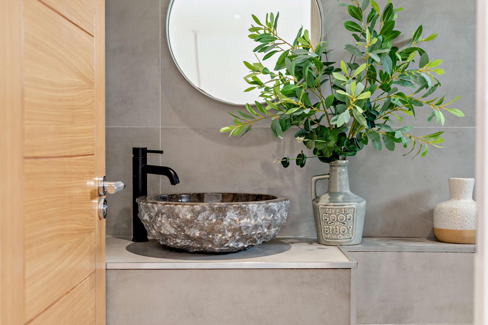 Outside is an extension of the house with expansive, private decked areas allowing you to open the sliding doors and create the perfect entertaining space connecting the two. Enjoy the views from here and use the BBQ and furniture to create unforgettable al fresco memories together. Further down, beyond the sun-drenched, lawned garden, is an even more impressive decking space. Overlooking the water and boasting sun loungers, this is the perfect spot to embrace the ocean in peace.