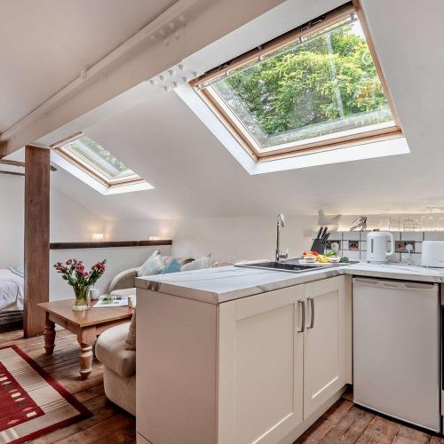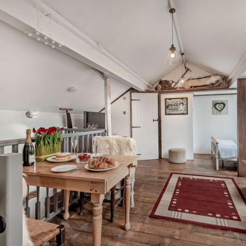 This charming converted barn-loft apartment boasts an outstanding location and offers a fabulous studio-style living space. As you enter through the main door, a staircase leads you to the open-plan area, designed for your comfort and convenience. The small yet fully equipped kitchen has everything you need to prepare a hearty breakfast, a light bite or an evening feast. Enjoy your meals at the cosy dining table while planning your adventures for the day. Relax in the lounge area on the corner sofa in front of the wood burner-effect electric fire or in the double bedroom area watching TV or reading a book. An en-suite shower room with WC completes the accommodation.