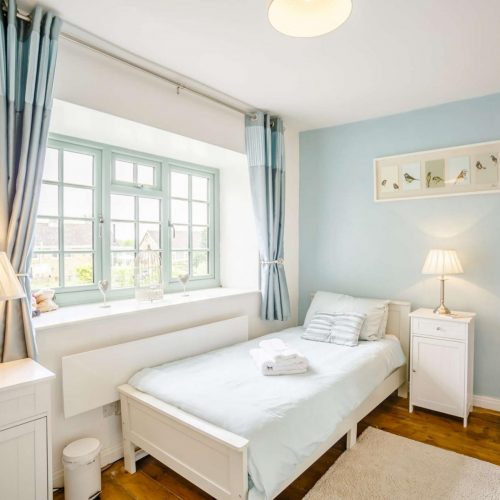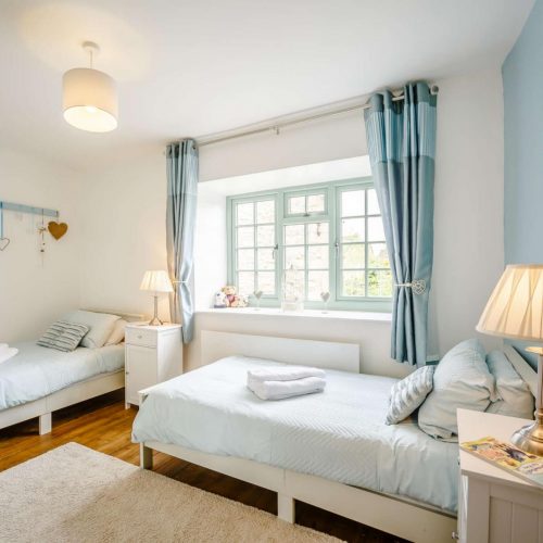 Stepping inside this lovely cottage, with its handsome double frontage, a charming entrance hall with a flagstone floor leads you through to the cosy and welcoming lounge. This light and spacious room is a perfect space for you to relax in, with exposed beams, comfortable seating, a cosy wood burner and TV. A selection of jigsaws, board games and a Wii console are also provided. Exploring further, the bright and attractively designed kitchen/diner features a lovely dining area and is fully equipped with an oven, dishwasher, fridge/freezer, microwave and washing machine. The bathroom is on the ground floor and features a shower over the bath and a WC. Going upstairs you will find the two cosy bedrooms. There’s a beautiful master bedroom with a king size bed and views across the village. The twin room features two single beds and large walk-in wardrobes.