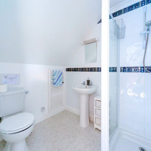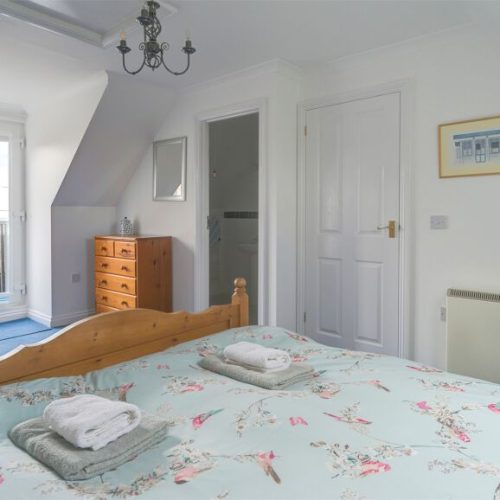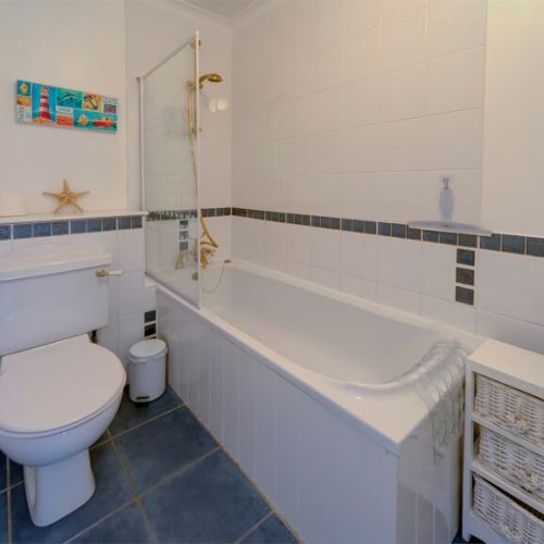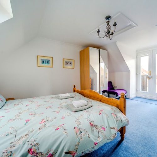Two shallow steps lead across a patio area at the front of this property to the front door, and once inside guests will find the spacious open-plan living area. This dual-aspect lounge/diner is a light-filled space with patio doors at one end which open onto the garden. There is a dining table seating six, as well as comfortable leather seating, a Smart TV/DVD, DAB radio and a coal-effect electric fire. Moving through to the kitchen, guests will find everything they need, including an electric oven and hob, microwave, fridge, freezer, dishwasher, and washing machine. One of the bedrooms, a delightful double room with views across the Downs, can also be found on the ground floor, as can the bathroom with its shower over bath and WC. The remaining two bedrooms can be found on the first floor. The first of these is the master bedroom, a double room which benefits from a private balcony and an en-suite shower room with shower and WC. The third bedroom is a restful twin room. An additional pull out single bed is available at an additional cost.