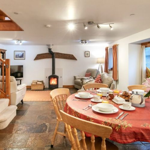 Guests enter this delightful barn conversion property directly into the spacious open-plan lounge/diner with its two deep sofas which are gathered around the warming wood burner, Smart TV, and DVD. The dining area is set off to one side, beyond which an archway leads through to the kitchen which is well-equipped with an oven, hob, microwave, American-style fridge/freezer, dishwasher, and washer/dryer. Also on the ground floor is a handy cloakroom with a WC. Stairs lead from the living space to the first-floor accommodation where there are three bedrooms. The first of these is a double room which benefits from an en-suite bathroom with shower-over-bath and WC, as well as doors which open onto a Juliette balcony. The second bedroom is a twin room, whilst the third has a single bed with an additional pull-out bed. The bathroom, also located on the first floor, offers a shower-over-bath and WC. Outside, the property has a private patio with garden furniture, which makes a lovely quiet space to sit and enjoy the tranquil surroundings.