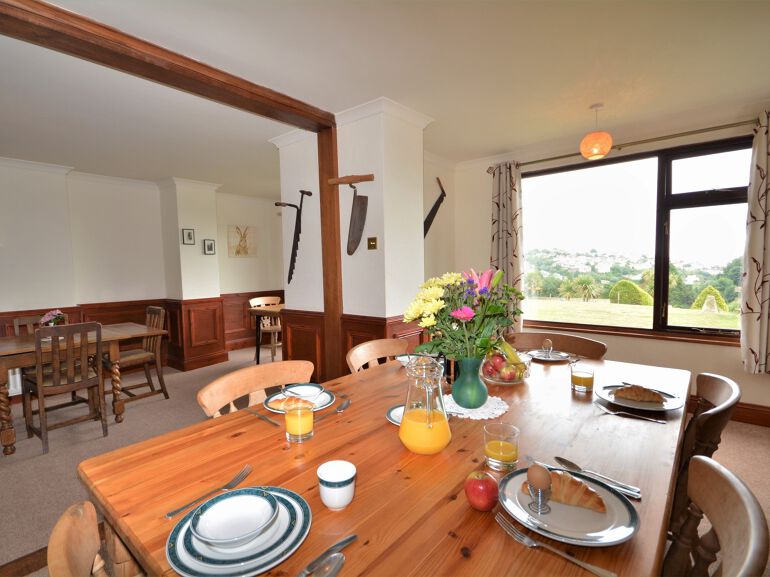 On entering this substantial accommodation, you will immediately be greeted by a sense of space and light and as you would expect from a property of this size, the shared areas offer ample space to enjoy each other’s company yet enough to find piece and quiet and settle down with a good book. Offering 2 lounges, both with ample comfy seating, one with TV/DVD and one with open fire (first basket of log included) enjoying the stunning views. The dining room, again with beautiful views is a fantastic room for everyone to come together with a table big enough to sit the whole party or the tables can be separated for a smaller more intimate setting. The kitchen is extremely well equipped with ample storage and space to whip up a meal for a large party with large gas cooker with hobs, extractor fan, separate grill, griddle, dishwasher, microwave and 2 fridges. The handy utility room houses the washing machine, tumble drier and freezer. Also on the ground floor you will find one of the nine bedrooms with shower cubicle and basin, TV and two separate WC’s. Heading upstairs you will find eight further bedrooms all with en-suite shower rooms, WC’s and TV’s. 3 double bedrooms and 1 twin bedroom benefit from uninterrupted sea views. 3 further doubles and 1 twin can also be found on this floor with a family bathroom.