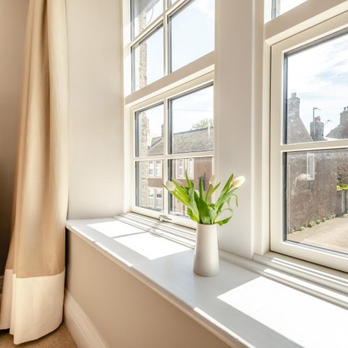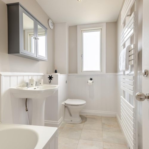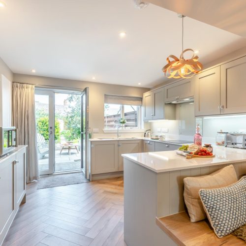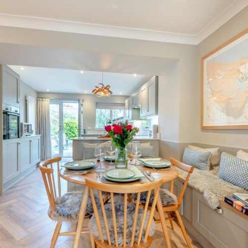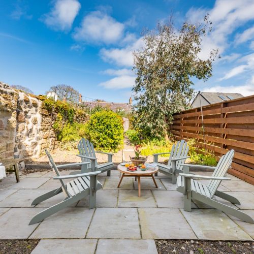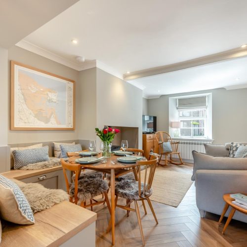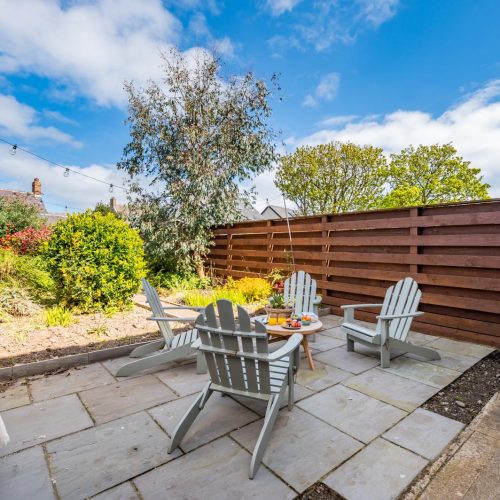 The fully enclosed rear garden provides a verdant, peaceful retreat in which to unwind. Here, gather at the furnished patio for quiet morning coffees and al fresco evening meals. Guests will also benefit from one on-street parking space, with more subject to availability. Please note, the path in the rear garden is shared with the neighbours, while check-in/out times may vary as the property’s access depends on the tidal island’s causeway crossing times.