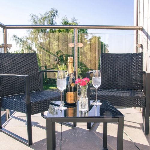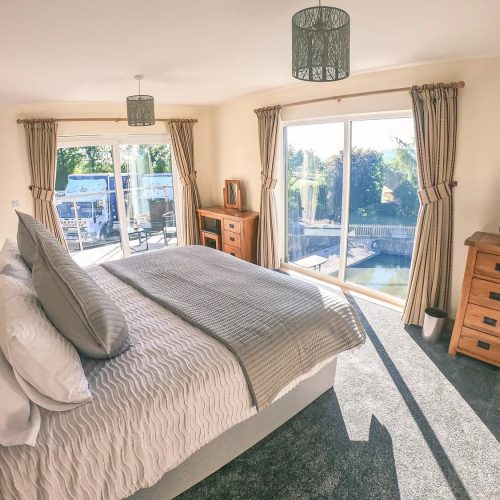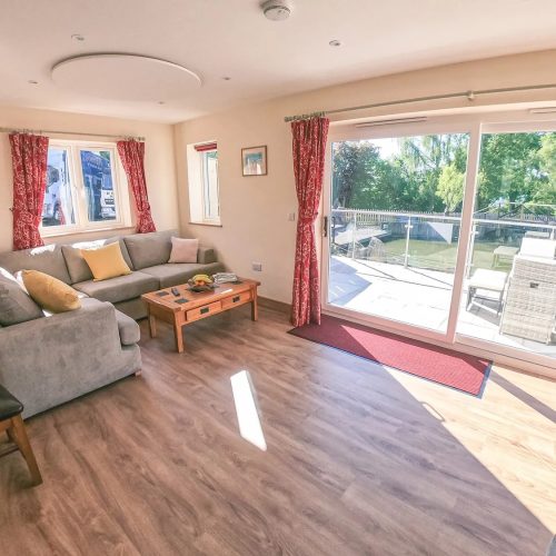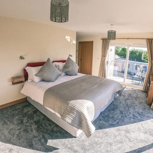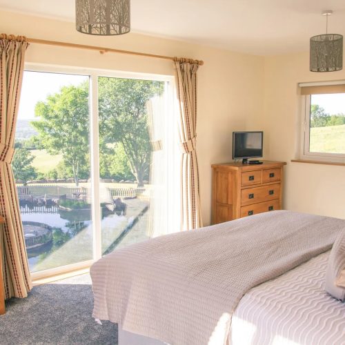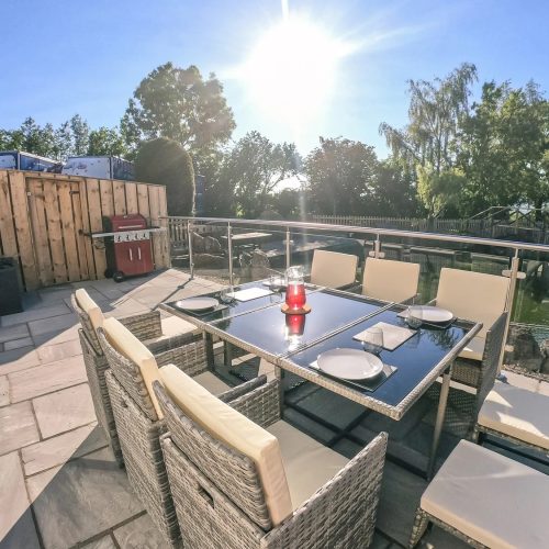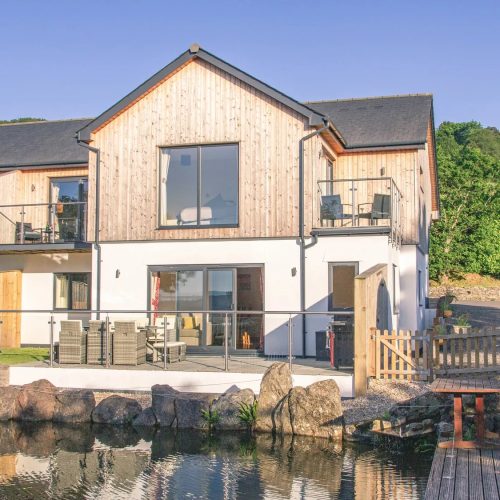 Step into this stunning, lakeside house at ground-floor level to be greeted by a beautiful, galleried landing that is filled with natural light. One of your spacious super-king-size bedrooms is also here, together with a family shower room with floor level walk in shower. Head down to the lower ground floor to find yourselves in the chic, open-plan lounge/kitchen/diner. This stylish space, with its great expanses of glass that bring the views right inside, opens up to a large patio area with seating and BBQ, allowing seamless indoor/outdoor living in the summer months. Find everything you need to help you cater for your party over in the modern kitchen, with its quartz worktops, breakfast bar and built-in appliances. There is also a family dining area for your holiday meals and a lounge where you can gather to watch TV. Also on the lower ground floor is another spacious super-king-size bedroom. Make your way up to the upper level of the house to find your two remaining bedrooms. These are both gorgeous super-king-size rooms with magnificent views, a mobile TV which can be moved into any room and superb balconies where you can relax with a glass of chilled wine to enjoy your scenic surroundings. One of these luxurious bedrooms has an en-suite bathroom and the other an en-suite floor level walk in shower room. Three of the super-king-size bedrooms at this property can also be arranged as twins by prior request.
