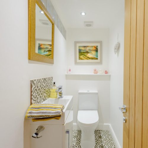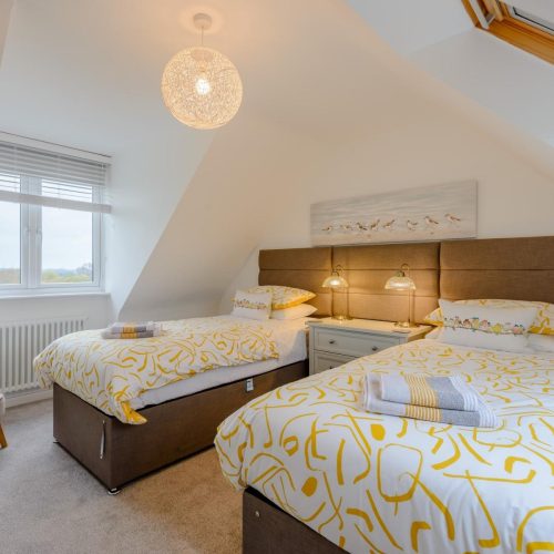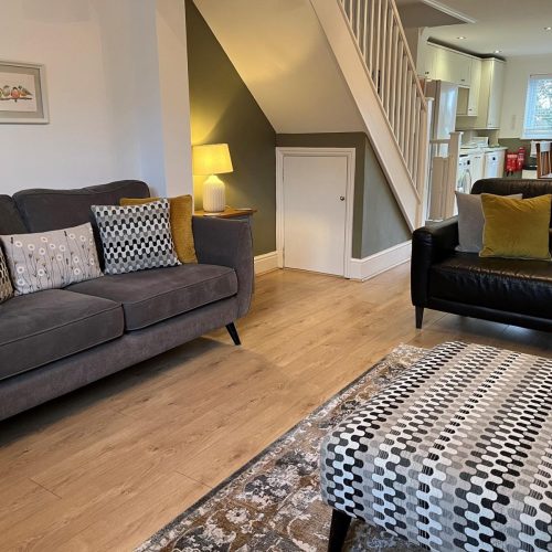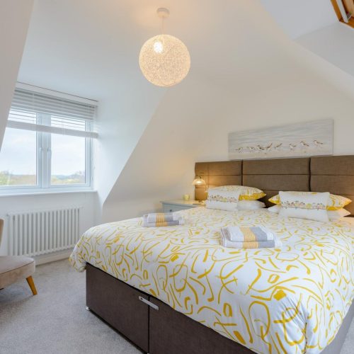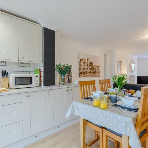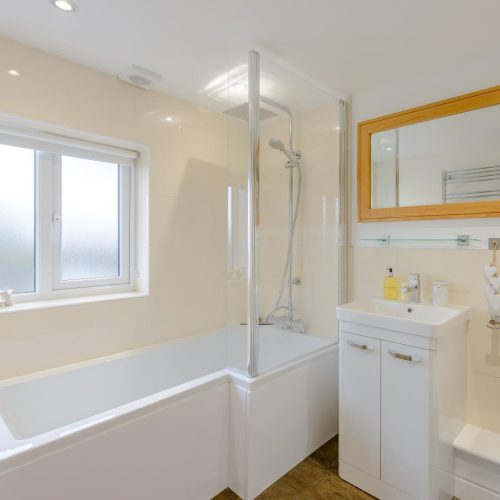 Three steps lead down from the front garden into the cottage. On entering you will find the light, stylish and relaxing open-plan lounge/kitchen/diner. The lounge is a lovely space with comfortable seating, Smart TV, DVD and Bluetooth speaker. There’s a charming dining area and the kitchen is fully equipped with everything you may need including a double oven, hob, dishwasher, washing machine and microwave. Going upstairs there’s a comfortable king-size bedroom on the first floor. The bathroom is also on the first floor, complete with a shower over the bath and a WC. There’s also a separate WC adjacent to the bathroom. Heading up to the second floor you will find a large double aspect bedroom with a super king-size bed which can be made up as a twin room on request. This room has reduced head height in the eaves and lovely views out over the heathland.