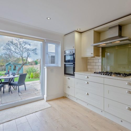 The front garden is gated and paved, with planted borders. The back garden is ideal for relaxing in, with a sunny patio, outdoor furniture, BBQ and a large lawn. There’s also an attractive cabin at the bottom of the garden kitted out as a games room with a pool table, table football, a selection of games and some comfortable seating. The back garden has access directly out onto the heath and footpath. Rear vehicle access is possible for storing bikes or kayaks in a separate garden shed. Ample parking is available for two cars on the gravel drive to the front of the cottage.