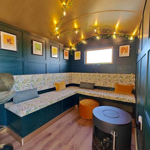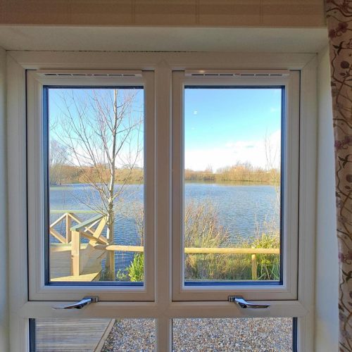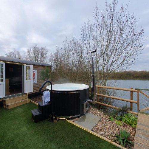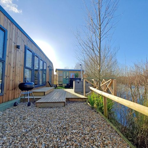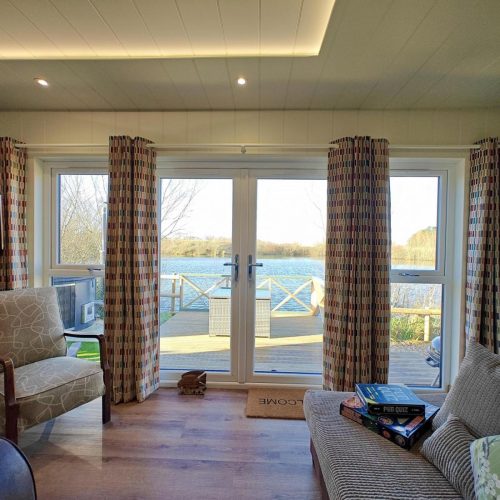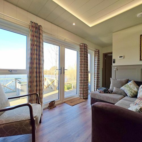 French doors open from the main living area, with a couple of steps leading down onto the relaxing decked space providing a lovely spot to sit back with a drink and take in the views across the lake. To the side there’s a BBQ and a welcoming hot tub. A couple of steps lead up and into the snug and cosy private bar and seating area with a wood burner effect electric fire, perfect for a sociable night in. Keen anglers can try their luck with the four tranquil fishing lakes onsite.