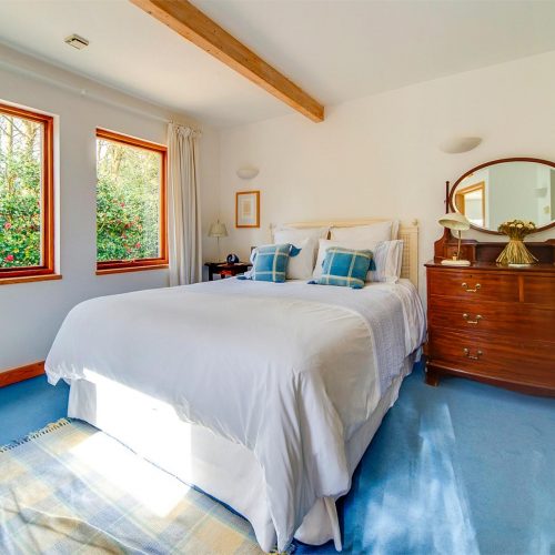 Stepping outside, you can relax in the secluded fenced garden which has a sunny terrace with garden furniture and a gas BBQ so you can enjoy dining al fresco. There’s also access to a hot tub by prior arrangement at an additional cost of £100 per week or per short break. Parking is available for two cars. The property also has a Chargemaster unit installed, so guests with electric cars can charge them with ease.