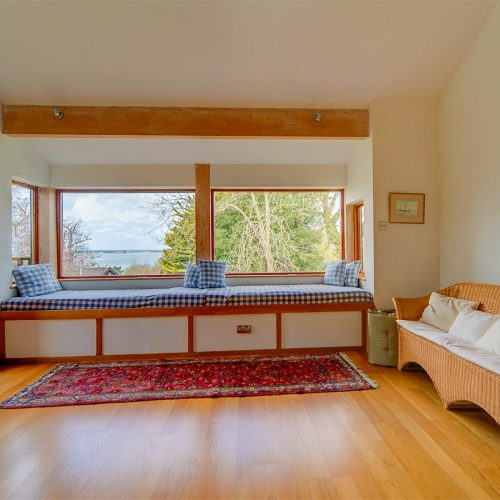 This attractive detached house is clad in Siberian Larch and offers lovely sea views from many of the rooms. On entering you will find a front hallway which opens into a pleasant and beautifully furnished diner with windows overlooking the garden. Two steps down from the diner lead you into the delightful lounge, which features comfy seating, Smart TV/DVD, a traditional wood burner and glimpses of the sea. A French door opens out onto the terrace. Moving into the elegantly designed kitchen, you will find it fully equipped with a gas hob, double oven, microwave, fridge/freezer, dishwasher and an integral coffee machine. The washing machine and tumble dryer are housed in a separate utility room. Exploring the ground floor further you will find a double bedroom with a king-size bed and an en-suite bathroom complete with shower over the bath and a WC. There is also a separate ground-floor WC. Going up to the first floor you will find two further cosy bedrooms, each with en-suite shower rooms. There’s a double room with a king-size bed and sea views, and a twin room. An additional folding bed can also be provided if the travel cot has not been requested. There is also an additional lounge to be found on the first floor, with large windows overlooking the sea. Here you can relax and watch the yachts and boats passing. Adjoining this room is a balcony which is an attractive spot to sit in on warm evenings.
