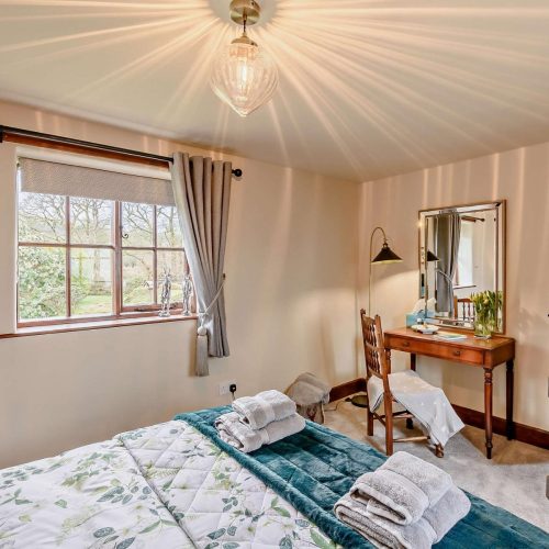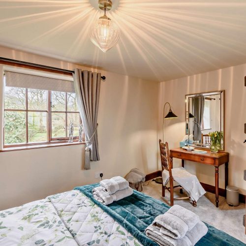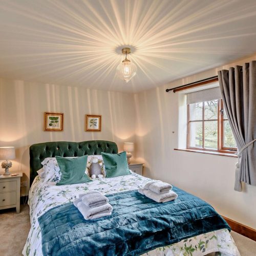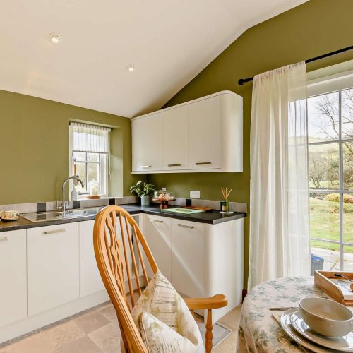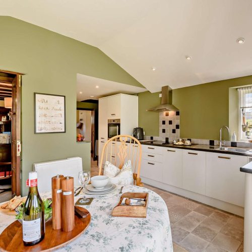 Upon entering this characterful cottage, you are welcomed into the cosy lounge area where there’s a Smart TV and wood burner. Next door, the brightly lit kitchen with patio doors makes a perfect space to enjoy your morning coffee. Through the kitchen and into the hallway, the king-sized bedroom is beautifully decorated and makes for a perfect relaxation space where you can grab a good night’s sleep. In the mornings, head into the shower room and freshen up in the shower cubicle.