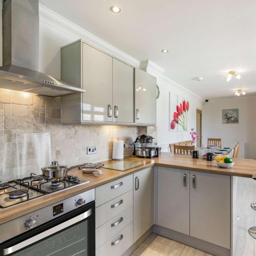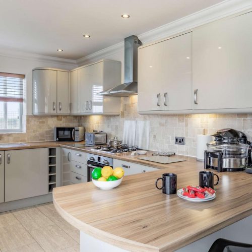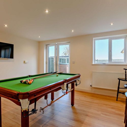 This property is made up of two buildings, the main house and the neighbouring annexe which together can accommodate up to eleven guests. In the main building, the spacious lounge/diner is a relaxing room with plenty of comfortable seating, a warming wood burner effect fire and a dining table. A second lounge area takes the form of a snug room which, with its games console and TV, makes a great retreat for teens. The contemporary kitchen, meanwhile, offers breakfast bar seating, as well as a large dining table, alongside which is an oven, hob, microwave, fridge/freezer, dishwasher, and washing machine. There is also a double bedroom on the ground floor, a pleasant room which benefits from an en-suite bathroom with shower-over-bath and WC. Upstairs, there are three further bedrooms: a stylish king-size room which offers a balcony with sea views, and an en-suite shower room with WC. There is also a single bedroom upstairs in the main house, next to which is the main bathroom which offers a free-standing bath, separate shower, and WC. The detached annexe can accommodate four further guests in two bedrooms: a king-size room and a twin room, both of which are located on the first floor, as is the bathroom with its shower-over-bath and WC. On the ground floor of the annexe, there is a fun games room with a snooker table.