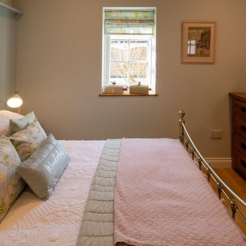 • A dreamy couple’s abode with charming cottage styling, including a brass-framed bed and roll-top bath