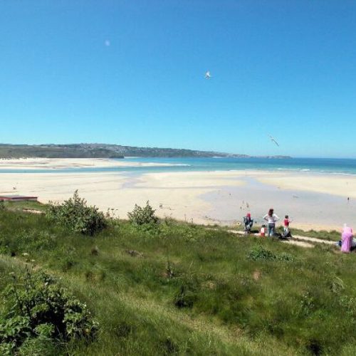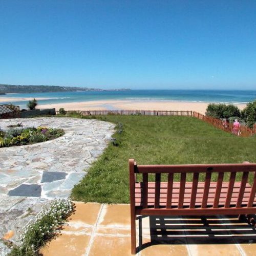 The accommodation is set on one floor and offers THREE bedrooms: 2 doubles and 1 twin with 2’6” beds. Bathroom: family size with bath, shower and heated towel rail. Separate WC. Lounge: magnificent with a large window area that takes advantage of the views over the garden to the golden sands a few hundred yards away. A TV, freesat, DVD and coal effect gas fire is also situated in the lounge. Kitchen/diner: reached from the lounge, well-equipped with electric cooker, ornamental Aga, microwave, fridge, freezer and dishwasher. Utility area: has a washing machine and tumble dryer. Outside: patio area with seating, BBQ, small summerhouse with seating and enclosed lawn. From the garden, panoramic views across the bay to St Ives, can be enjoyed over a glass of wine. Amenities: private parking for 3 cars. Bed linen, towels and central heating included. 4 well-behaved dogs welcome. Location: pub, shop and beach are all within a short stroll.