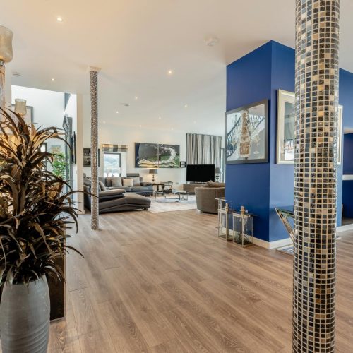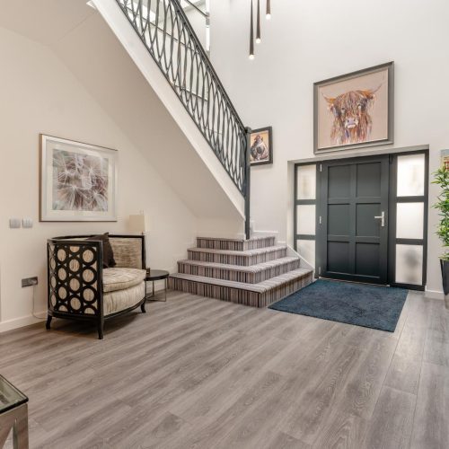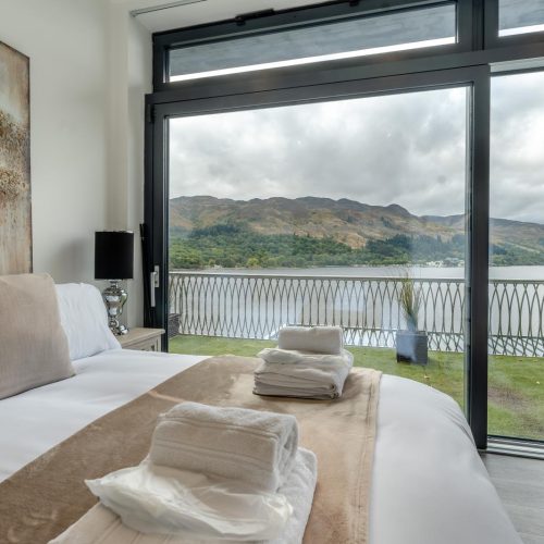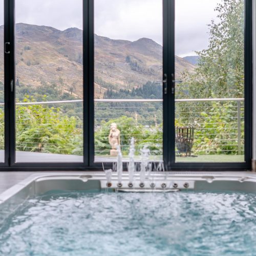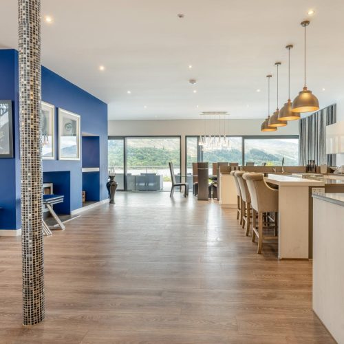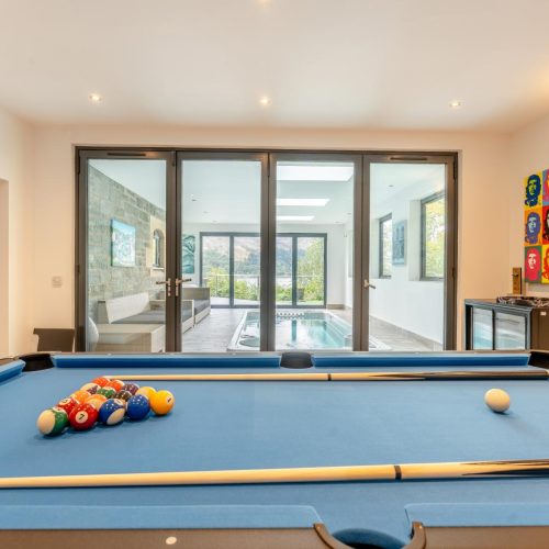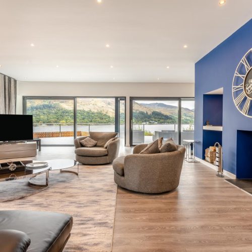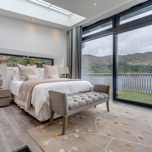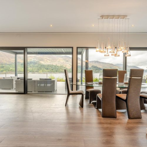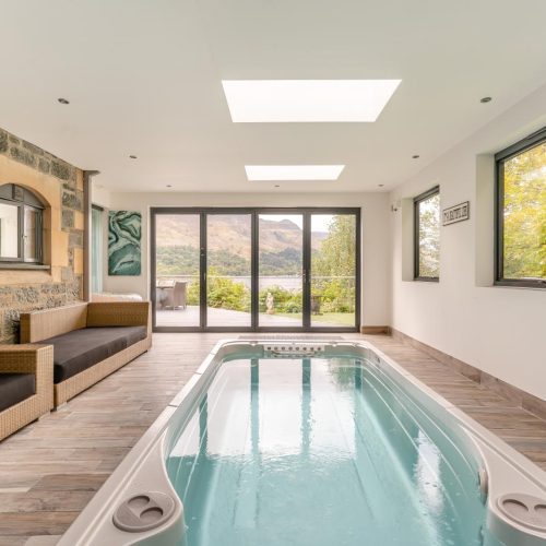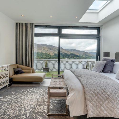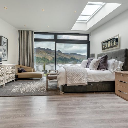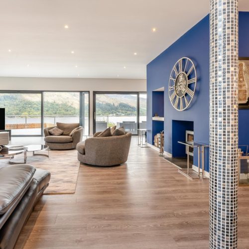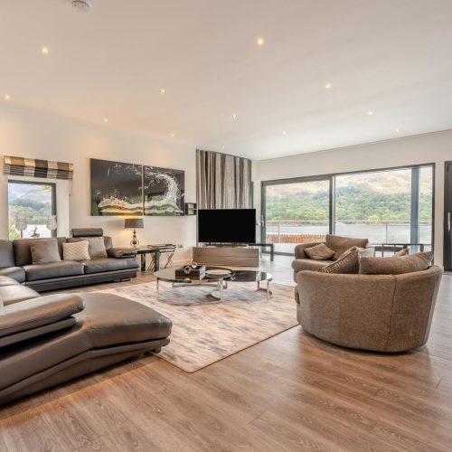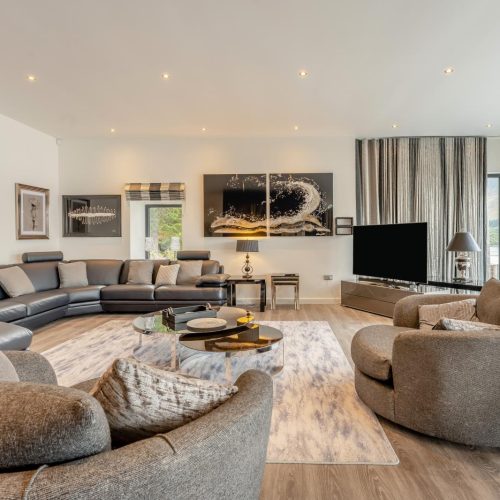 Leading up the private drive with access through the electric gates to this stunning house, set in an elevated position with magnificent views across Loch Earn. Step inside this luxurious property into the spacious open-plan living area. Relax on the comfortable sofas after a day out exploring this National Landscape and admire the stunning loch and mountain views through the floor to ceiling large picture windows with bi-folding doors leading directly out to the large terrace patio. Watch a great movie on the smart TV, mix up your favourite cocktail in the bar and on those cooler evenings enjoy cosy nights in front of the roaring wood burner. Cook up a storm in the well-equipped bespoke kitchen with central island and seating are. The comfortable dining area is perfect for family gatherings where you can also admire the breath-taking views. Next is the games room where you can test your skills on the American pool table and a wall-mounted darts board. Followed by the superb indoor swim spa where you can swim against the wave settings or relax amid the hot tub jets, whilst enjoying the breathtaking views. Leading through from the games room you will also find a spacious Sauna to relax and unwind in and a LUMI cold water therapy pod. Finally completing the ground floor is the bathroom with free-standing bath and WC. Leading up the stairs to the five luxurious bedrooms all with TVs. Comprising of a master super king-size bedroom with panoramic loch views, dressing room, en-suite shower room with WC and direct access out to the spacious balcony. A double bedroom with panoramic loch views, en-suite shower room with WC and direct access to the balcony. A king-size bedroom also with breath-taking panoramic loch views with direct access onto the balcony and en-suite shower room with WC. A double bedroom with lovely side loch views and en-suite shower room with W/C. Finally completing this stunning house is a twin bedroom with en-suite shower room and WC.