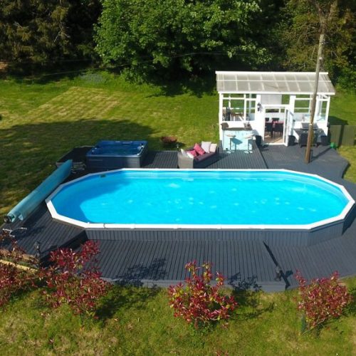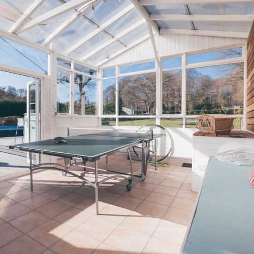 Heading outside from the main entrance you will find a lawn wrapping around the property. A sunny terrace is ideally placed for trying out the gas BBQ and enjoying lazy meals at the table and chairs. Adjacent to here is a swimming pool, summer house and hot tub, the perfect spot to spend relaxed afternoons. For the younger members of the group there is outdoor table tennis and a trampoline to enjoy. To the side of the property is a parking area suitable for up to five cars.