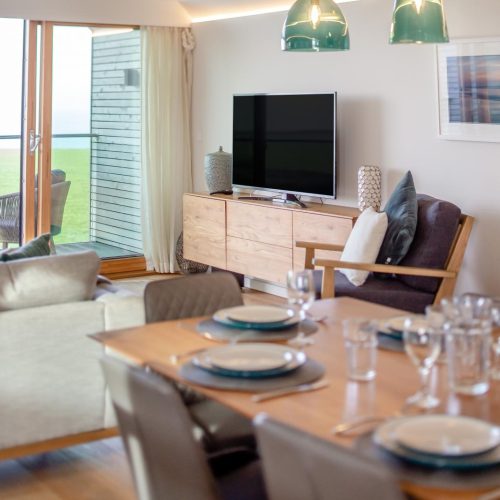 Overlooking the legendary Bedruthan Steps sea stacks at Mawgan Porth, this chic holiday lodge home sleeps six people over three bedrooms, and is the ideal accommodation choice for families or groups of friends yearning for an exceptionally stylish luxury coastal retreat to call home while they explore the beautiful Cornish coast together.