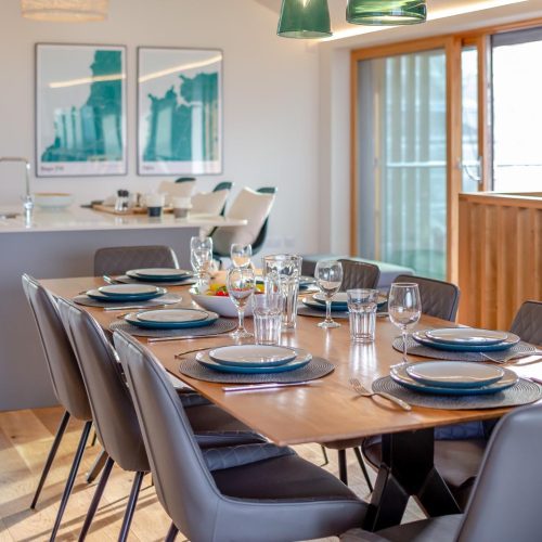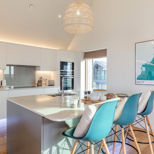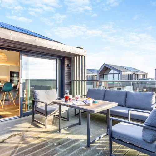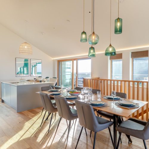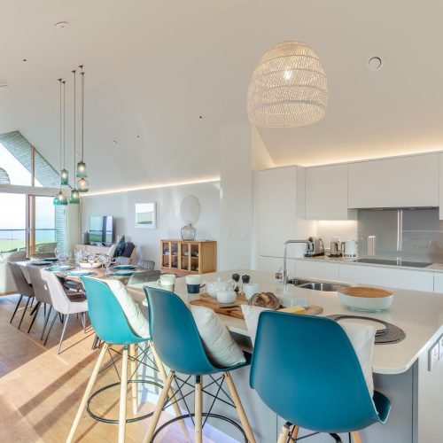 From the parking area (there’s room for two vehicles), make your way to this exquisite upside-down-designed abode that makes the very best of the views on offer. Take the feature balustrade up to the first floor and you’ll find a sleek and spacious open-plan living/kitchen/dining area. Slip onto the sofa and make yourself at home while you bask in the beautiful sea views through the floor-to-ceiling glass sliding doors. When it’s time to eat, head to the smart kitchen area to cook, and then share an elegant meal with your loved ones in the chic dining area. After dinner, pour yourself a glass of wine and head back to the sumptuous living area to catch up on your favourite TV shows. When it’s time for bed, head down to the ground floor and you’ll find three beautifully styled bedrooms. The master bedroom offers a king-size bed with sea views, a stylish en-suite shower room with a double walk-in rainfall shower – as well as a patio door leading to the front of the property. The second bedroom offers a king-size zip-and-link bed, while the third offers a zip-and-link king-size bed and an en-suite shower room. Completing the layout is a stylish family bathroom with a bath with a shower over.