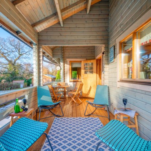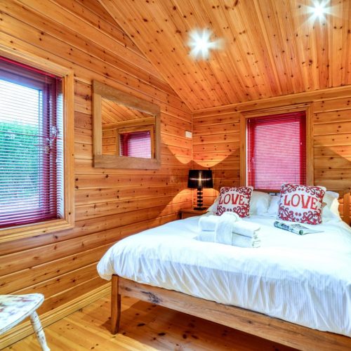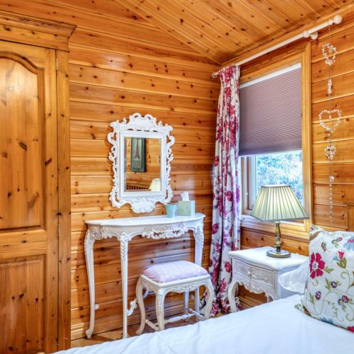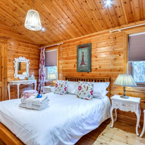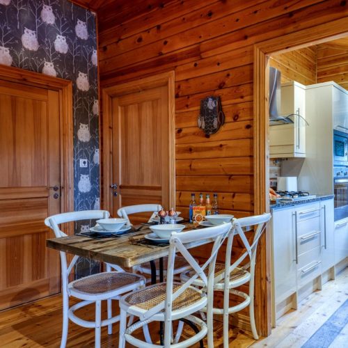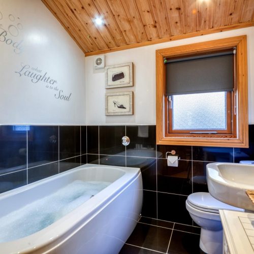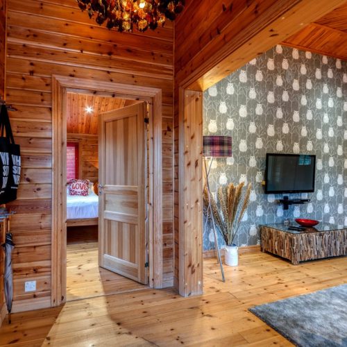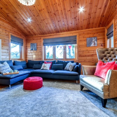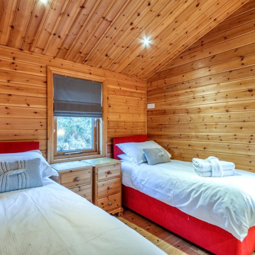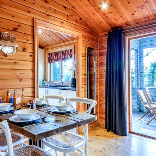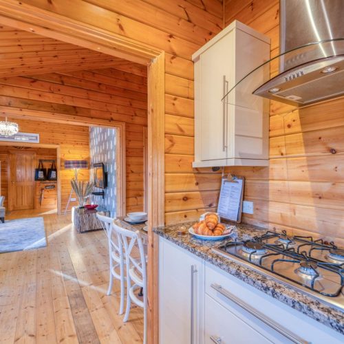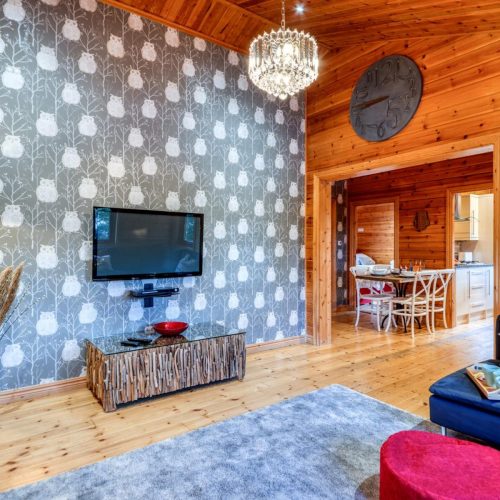 This blue wooden lodge is approached via a few steps onto a wooden covered veranda, and step into the entrance hall, with contemporary decor and rustic wooden charm, a real unique treat. On the left is a ground floor shower room with shower and WC, and further ahead is the spacious king-size bedroom. To the right is the lounge/diner, whether you are discussing the day’s events, watching a movie on the Smart TV or play a board game, this is a fantastic space with plenty of comfy seating. Linking to the lounge is a dining area with table and chairs that comfortably seat everyone. This impressive space has everything you need for a relaxing stay together, with the kitchen offering an electric oven and gas hob, fridge/freezer, dishwasher and washing machine. Accessed off the dining area is a large king-size bedroom Smart TV, and the third bedroom is a twin bedroom. Soak away in the final room of the property, the bathroom, with bath and WC.