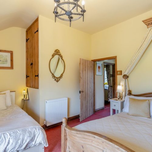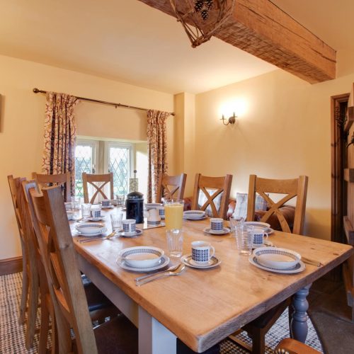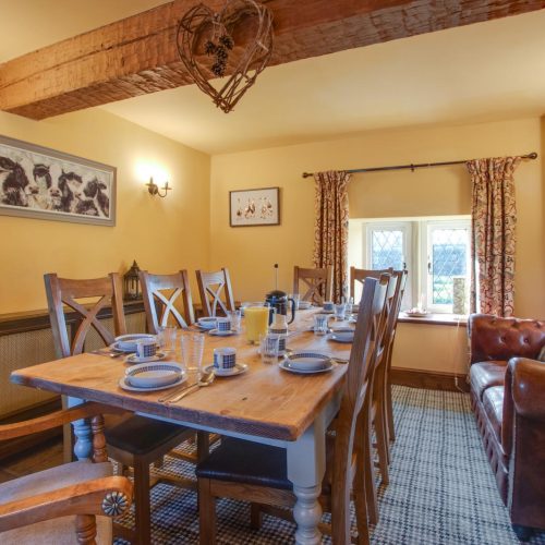 The farmhouse offers you the beautiful traditional character of a Derbyshire farmhouse, with rich and warm interiors that have a hint of medieval flair. There is a dining room that welcomes you as you walk into the property, with plenty of seating for everyone to enjoy formal meals and celebrations together. There is not one, but two living rooms that sit on either side of the house, both with TVs and wood burners. A traditional farmhouse kitchen is in the heart of the farmhouse, with an AGA adding warmth and ambience, and a sofa that sits in the window where you can enjoy the view or relax whilst people are cooking or preparing meals. There is a utility just off from the kitchen. Upstairs are the four bedrooms with the master bedroom having an en-suite shower room, as well as stairs to one of the living rooms. There is a family bathroom on the first floor, which offers a hand-held shower over the bath, and a WC. The three other bedrooms comprise a king-size bedroom, a family room with a double and single bed, and a double bedroom.