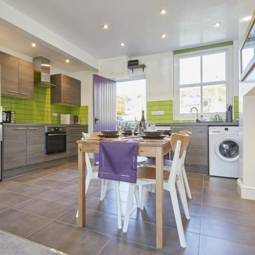 Make your way inside this welcoming bolthole and find yourself in the open-plan living space. Filled with natural light and bursts of vibrant colour, the lounge/kitchen/diner creates a fantastic hub of the home in which you can spend relaxing mornings and lively nights. A pair of comfortable sofas sit in front of the Smart TV and the wood burner effect electric fire – the ideal spot for film nights and cosy afternoons. With lots of room for board games to be laid out, this is a great spot for enjoying quality time together after adventures. Moving through to the kitchen, find all you need to cook up a feast. A sleek, bright space, it’s a great place to slice and dice ingredients, and fellow guests can keep the chef company with a glass of something cold at the table. After a pleasant evening, head upstairs where the two bedrooms and the family shower room await. With far-reaching fell views, the bedrooms are tranquil and calming. The master boasts plenty of space whilst the twin is snug yet inviting. Bursts of berry pink brighten up the shower room where you can freshen up in the mornings before heading downstairs for a brew.