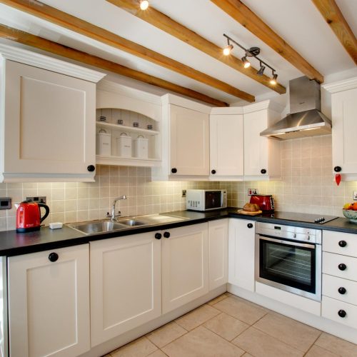 The ground-floor accommodation is open plan, with traditional beamed ceilings and tiled flooring throughout. Relax on the comfortable sofa by the clear-view wood burner, or switch on the TV and DVD player for a cosy movie night. The contemporary shaker-style kitchen is well-equipped, and you can enjoy a romantic meal or takeaway at the antique round oak table. Upstairs, the king-size bedroom is fitted with a high-quality mattress and bedding. This room also features a single sofa bed, which is suitable for a small child. The bedroom is served by a separate light and airy shower room with a power shower.