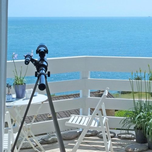 On arrival, you instantly feel how charming this apartment is, from the footbridge style gravel path that leads you to the front door. Once inside you are welcomed into an inviting, peaceful and lovingly maintained property. Both bedrooms can be found leading off from the hallway. The master bedroom with super-king size bed is a bright and airy, stylish space, with en-suite shower room, with twin beds in the second bedroom boasting its own en-suite shower room. Wonderful sea views can be enjoyed along the front of the apartment from the kitchen window to the balcony off of the sitting room. The kitchen is well-equipped with electric oven and hob, microwave, fridge/freezer and dishwasher; the washing machine can also be found here along with the dining table which is large enough to seat your whole group. This apartment’s sitting room is the most fantastic setting, complete with TV, DVD and Xbox; many a holiday gathering can be enjoyed here.