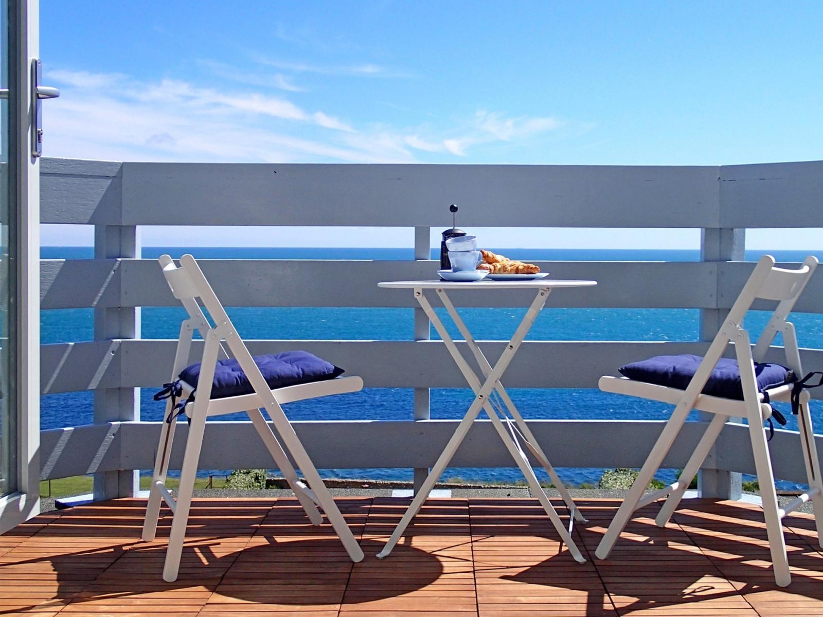 On arrival, you instantly feel how charming this apartment is, from the footbridge style gravel path that leads you to the front door. Once inside you are welcomed into an inviting, peaceful and lovingly maintained property. Both bedrooms can be found leading off from the hallway. The master bedroom with super-king size bed is a bright and airy, stylish space, with en-suite shower room, with twin beds in the second bedroom boasting its own en-suite shower room. Wonderful sea views can be enjoyed along the front of the apartment from the kitchen window to the balcony off of the sitting room. The kitchen is well-equipped with electric oven and hob, microwave, fridge/freezer and dishwasher; the washing machine can also be found here along with the dining table which is large enough to seat your whole group. This apartment’s sitting room is the most fantastic setting, complete with TV, DVD and Xbox; many a holiday gathering can be enjoyed here.