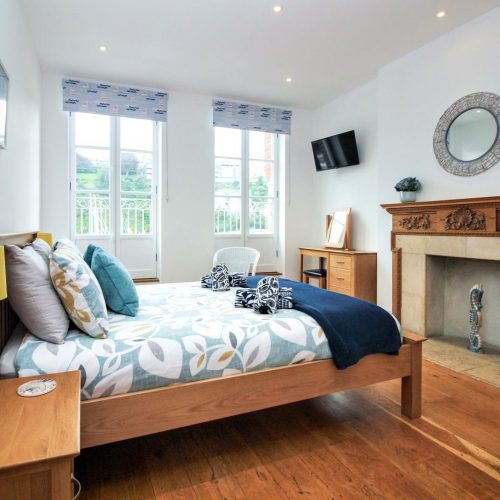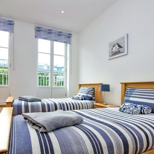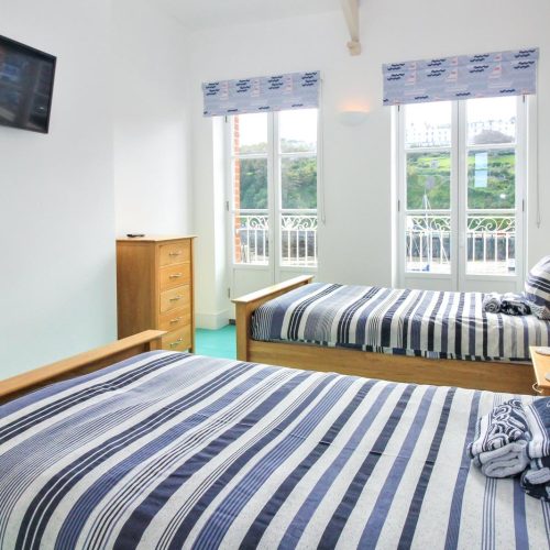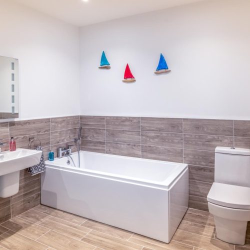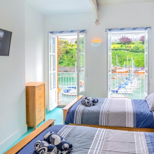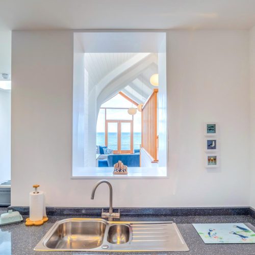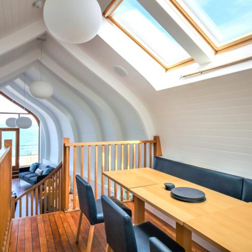 Step through the patio doors and into the boat-shaped lounge, where windows frame uninterrupted views across the Bristol Channel to Wales. Whether you’re curling up after a day of coastal exploration or enjoying a relaxed morning with coffee in hand, this light-filled space is designed for comfort and relaxation. A few steps lead to the elevated dining area for memorable meals while soaking in the ever-changing seascape. Towards the back of the apartment, the well-equipped kitchen offers everything you need to prepare delicious feasts. The first floor is home to two harbour-view bedrooms – a twin room and an en-suite king-size bedroom – both thoughtfully designed to offer a restful night’s sleep. A stylish family bathroom completes this level. Head up to the second floor, where another twin room and a spacious king-size bedroom await with more of those fabulous views.