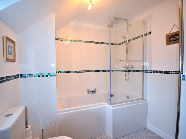 Walk up the driveway and step into the porch, where you can hang your coats and kick off your boots. Continue into the open-plan lounge/dining room, where you will immediately feel at home. There are two large comfortable sofas which are perfect for curling up and watching a good film, soft carpets throughout and patio doors leading to your own private garden space. There is also a selection of books and board games to choose from. Straight ahead you will see the doorway through to the traditional kitchen, which is well-equipped for preparing and cooking meals during your stay. This looks out over the garden, with a useful utility room next door. Heading upstairs there are 3 bedrooms to choose from, all with freshly laundered bedding and towels – 1 double with en-suite shower room, 1 further double and 1 twin. There is also a family bathroom.
