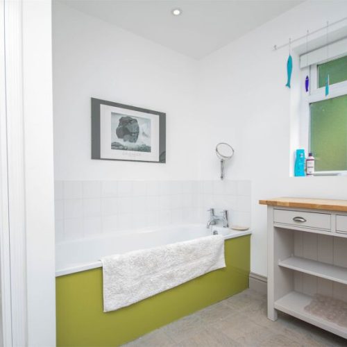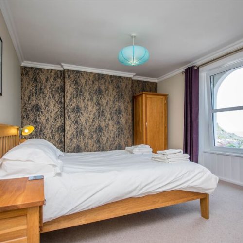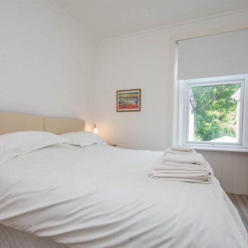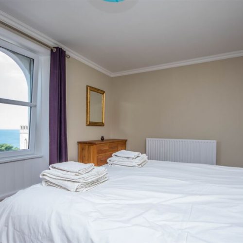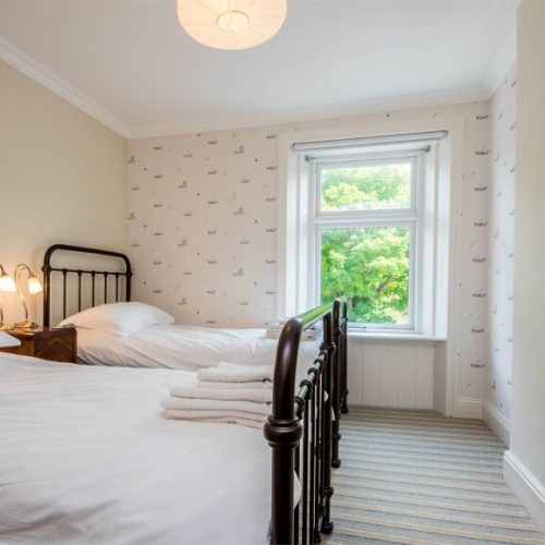 Seven steps lead up to the hall where there’s space for boots and coats, and which leads into the light and comfortable lounge/diner. This is a relaxing space, with plenty of seating, a wood burner and a bay window with wonderful sea views. There’s also a delightful dining area, perfect for enjoying a family meal. The galley-style kitchen with French doors to the courtyard is equipped with a double oven, fridge, freezer, washing machine, dryer and microwave. Moving up to the first floor you will find a second lounge with a Victorian-style feature fireplace, TV/DVD, iPod dock, oak floor and a bay window offering sea views. The property also has a twin room which can be made up into a double room on request. The first floor features a shower room with WC, and a bathroom with a bath, separate shower and WC. Going up to the second floor you will find two further bedrooms: a twin and a double with sea views.