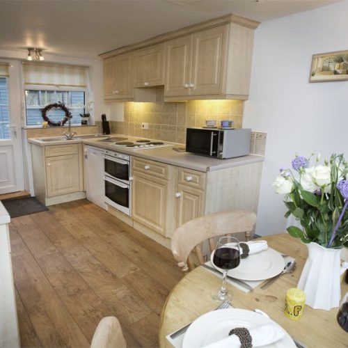 On entering this pretty holiday home, you will find a tastefully decorated lounge with beautiful views over the village and down to the sea. The lounge makes an ideal space to relax in, with comfortable seating, a flame effect gas fire, TV and DVD. There’s also a light and stylish kitchen/diner, fully equipped with oven, microwave, dishwasher and washing machine. Going upstairs you will find three pretty bedrooms. There are two double rooms and a bunk bedroom which is perfect for children. There is also a bathroom complete with a shower over the bath and a WC.