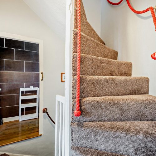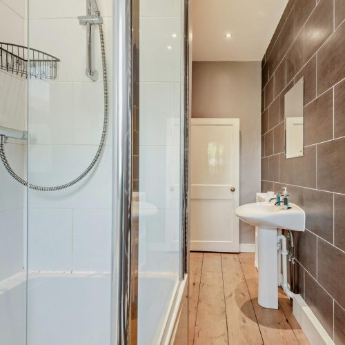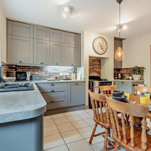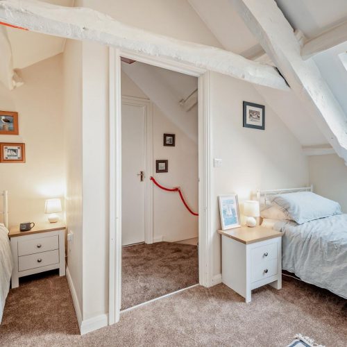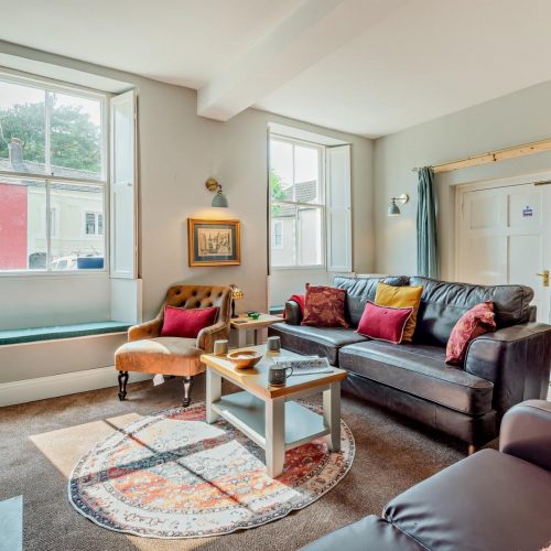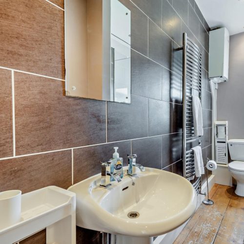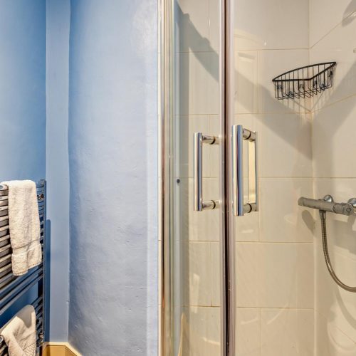 As you step through the front door of this tastefully refurbished townhouse, you’re immediately greeted by the spacious lounge area. With its high ceilings and large windows, the room feels light and airy The centrepiece is undoubtedly the cosy wood burner, perfect for relaxing watching the Smart TV after a busy day’s exploring. From the lounge, you will find the stylish contemporary kitchen, equipped with seating for 6, a perfect space for quality time together whilst tucking into your delicious home cooked food. Steep spiral cottage style stairs lead to the second floor which features 3 spacious double bedrooms, 1 with an en-suite shower room, as well as the family bathroom which boasts a bath, perfect for soothing aching muscles. Another set of steep spiral stairs lead to the third floor which houses a twin bedroom (available on request) with original low beams, perfect for those wanting a floor to themselves.