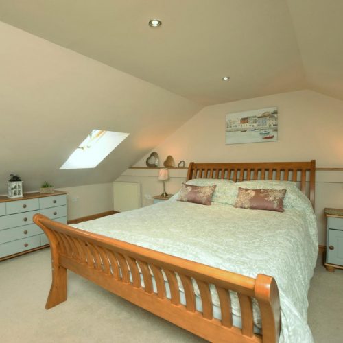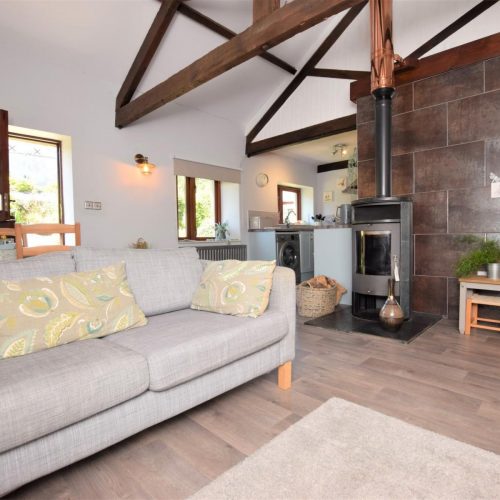 This fabulously quirky cottage offers good space and a cosy feel. Enter the cottage and into a splendid lounge with Smart TV and comfy sofa bed which can sleep two extra guests. Up some steps and you will find the wonderful open-plan lounge/kitchen/diner, complete with cosy seating, wood burner, Smart TV and a well-equipped kitchen and dining area. Take the stairs to the first floor, where you can find one king size bedroom with velux windows. Completing the property is a shower room with WC.