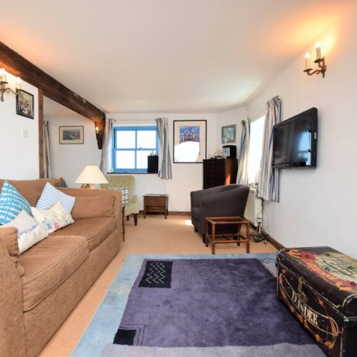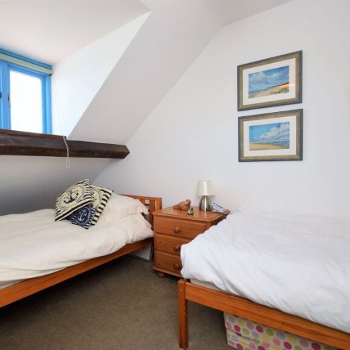 This artfully styled second-floor apartment with attractive decor is positioned above a smart parade of independent shops. This includes a deli, an art gallery, fish and chip shop, cafes and coffee shops. There is access to the property via a flight of internal stairs to the first floor from Jicklings Yard. Guests will initially step into the entrance hall with space for coats and shoes before ascending a further flight of stairs to the landing. This opens onto a utility room with a washing machine and tumble dryer as well as space for air drying laundry. Here you will also find there is a separate WC and bathroom with shower over bath and WC. The open-plan lounge/kitchen/diner is also accessed off the landing. Situated at the front of the property, this spacious room with fine sea views, is flooded with natural light from the dual aspect windows, sit back and relax after a day on the beach on the comfortable sofa, lose yourself in a good book from the well-stocked bookshelf, watch the TV, or while reclining in the armchair listen to something from the huge CD collection. The kitchen area provides everything required for holiday dining including an electric oven and gas hob, microwave, fridge with ice compartment and a handy dishwasher. With fabulous sea views, guests are able to enjoy the resulting meals in the dining area. The apartment has two bedrooms located up separate stairways to the second floor, off the landing, the first of which is a double bedroom while the second bedroom is a twin, both have far reaching views and plenty of storage space.