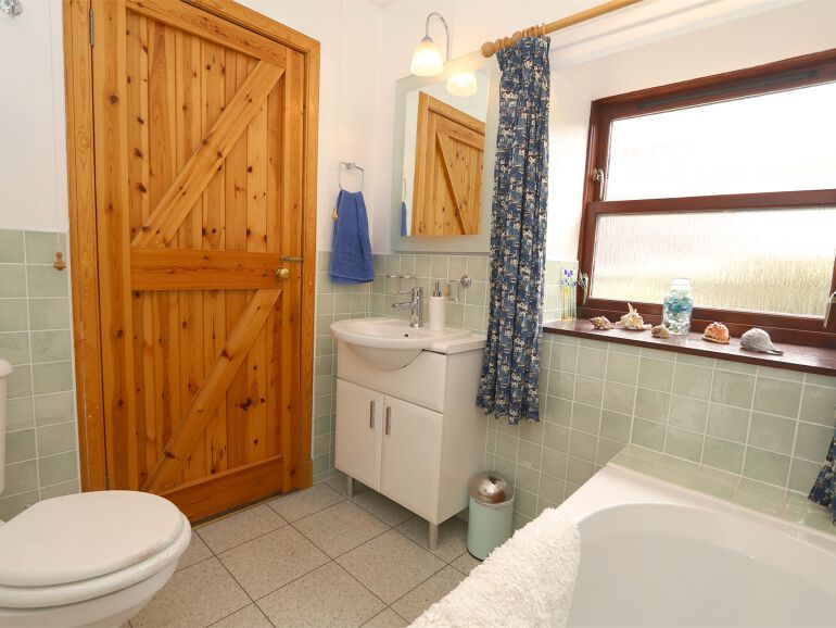 On entering this delightful single-level holiday cottage you will find yourself in the hallway . This leads you to the tastefully furnished lounge/diner. With a two seater sofa and two rush-seated armchairs, a small TV complete with Netflix account, coal-effect gas fire, an upright piano which guests are welcome to use, a toy chest, with a range of board games, a good selection of books, maps and area guides and the dining table and chairs. Heading into the kitchen, you will find it fully equipped with all the essentials, including an electric oven and gas hob, microwave, fridge/freezer and digital radio. There are two comfortable bedrooms; the master bedroom with a king-size bed and an en-suite bathroom, which has a shower over the bath and WC, and the twin bedroom; with one 3 foot bed and a second 3 foot 6 inch bed. This room also has a selection of children’s books, a cupboard with hanging space and a chest of drawers. Next to this is a shower room complete with WC.