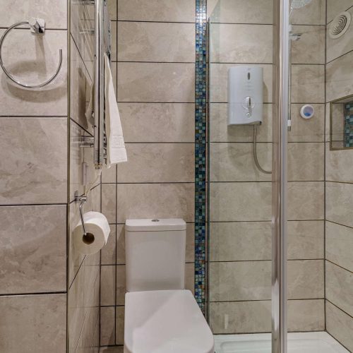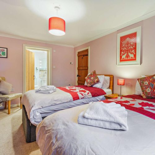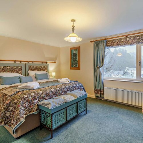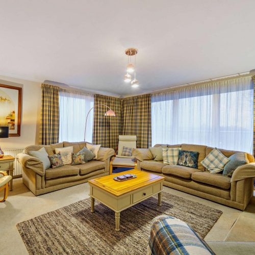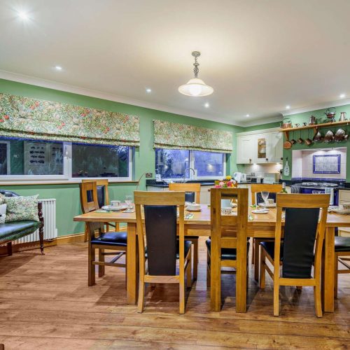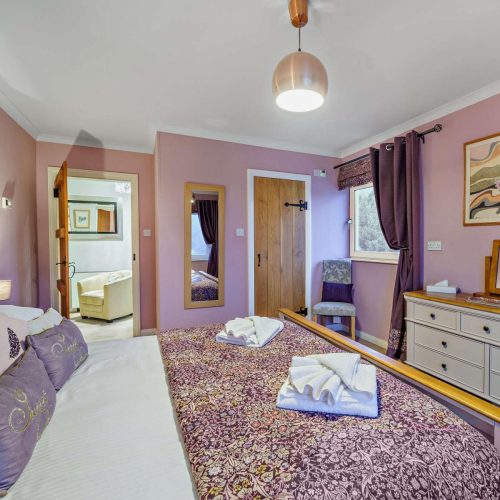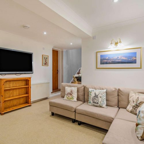 Two of the five sumptuous bedrooms are also on this floor, including the master bedroom with super-king-size bed with Smart TV and access to the balcony. This room has an en-suite bathroom with spa bath and separate walk in shower. The second bedroom with super king-size bed, features breathtaking views and an en-suite bathroom. From the hall, there is a guest cloakroom with WC and shower. Head down to the lower ground floor, where three further en-suite bedrooms await – one with super-king-size zip-and-link beds, which can be separated upon request, another with twin zip-and-link beds, which can be joined on request to make a super-king-size bed, and a third with a king-size bed with antique furniture and ensuite bathroom. This level includes a snug seating area with Smart TV – perfect for kids to do their own thing or for some quiet reading – and a second dining area ideal for younger guests. Also, for a special treat, take advantage of a complete spa experience after a long day’s walk, and relax in the invigorating sauna via the attached wet room.