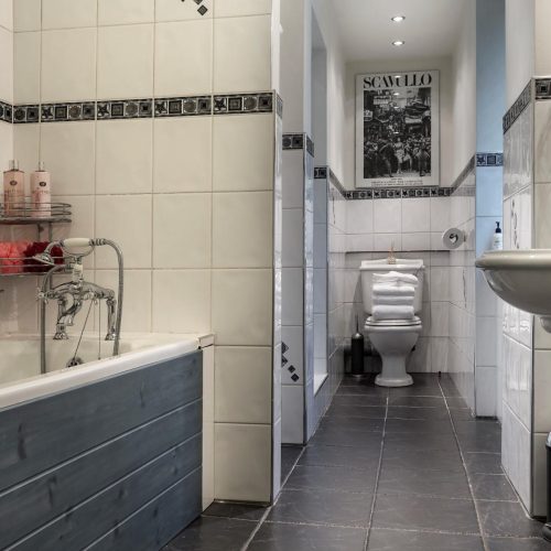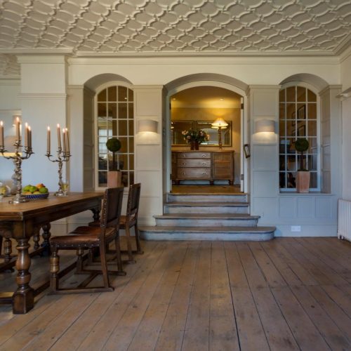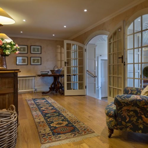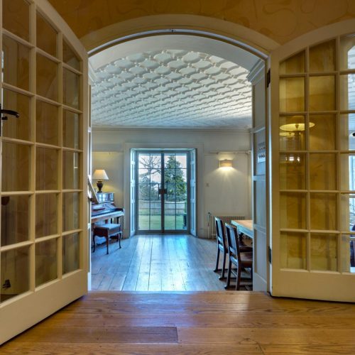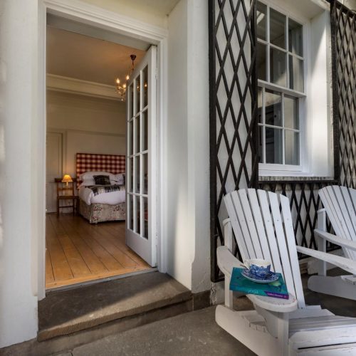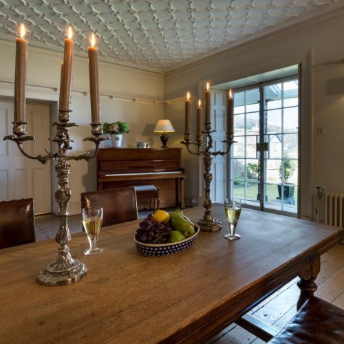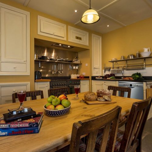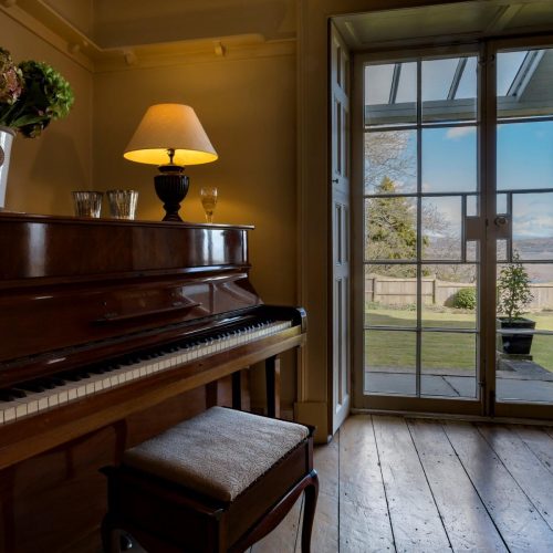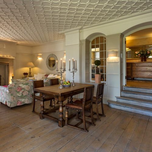 Entering this grand palladium-style villa via a small courtyard between the Coach House and the old stables, you step through the French windows which take you into the attractive open-plan kitchen/diner and snug. A large room with original stone flagged floor, to one end is the kitchen area which is equipped with range oven, microwave, dishwasher and coffee cafetiere. The dining table sits in the middle and to the other end is a comfy snug area with seating and an open fire. To the rear of the kitchen, through a door is a small scullery with the fridge/freezer, laundry equipment and a separate WC. From the kitchen you can head through the central hall, which is a feature in its own right with polished timber floors and French doors flanked by arched windows, and then step down three wide steps into the spacious and tasteful lounge. A timber floor sits beneath an ornate plaster ceiling, where to the far end is a traditional wood burner set in a beautiful specially commissioned stone fire surround. Two sets of French windows open out to the veranda and the garden beyond. With comfy seating, TV/DVD and a piano, this is a splendid space to relax in, and also contains a beautiful oak table for grand dining. Exploring further you will find two comfy bedrooms. The first bedroom is off the main hall, to the rear of the apartment and with a king-size double bed. Adjacent to this is the bathroom with bath, shower cubicle and WC. The master bedroom is just off the lounge and also features a king-size double bed. The window and glazed door look out to the garden, where you can step out onto the veranda to enjoy the sunrise and an early morning coffee.