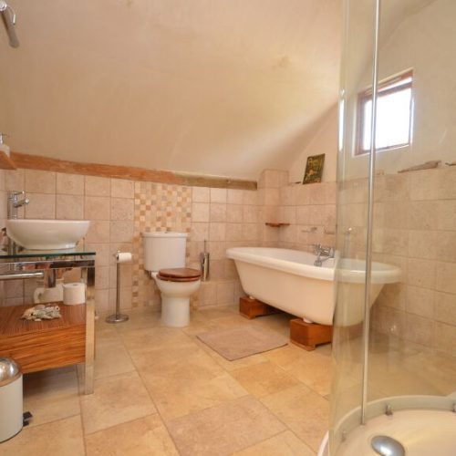 Guest entering this charming property into a large entrance hall, through to a spacious and light open plan lounge/kitchen/dinrer, retaining many of the original features including the exposed timber bearms, an ideal living space the kitchen area having an electric oven and hob, microwave, fridge with ice compartment, the lounge area with comfortable sofas, cosy with the woodburner for those chilly winter evenings (complimentary 1st basket of logs included), with Sky TV including sports and movie. A dining area perfect for your evening meals. The conservatory offers the perfect place to relax with views over the pond. A retiring room with double sofa bed, a large selection of books and games, an ideal snug area. A double bedroom on the ground floor. A shower room with shower cubicle, WC and wash hand basin. A steep spiral stair case leads from the open plan lounge/dining/kitchen area to the first floor giving access to the king size master bedroom with exposed beams, vaulted ceiling and French doors, the en suite to the master bedroom comprises of roll top bath, separate shower, WC and wash hand basin.