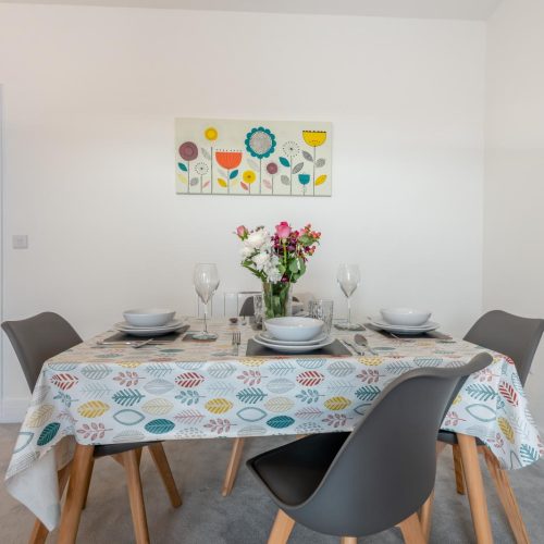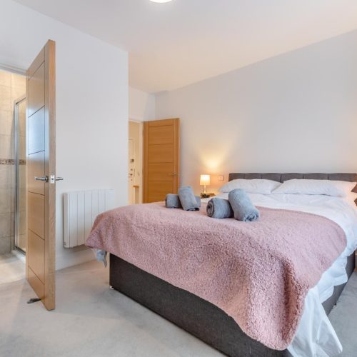 Step inside and you’ll be greeted by a welcoming hallway before you’ll find the bright and airy living/dining room. Bathed in natural light and decorated in warm, earthy tones, take a moment to make yourself at home before heading to the sleek kitchen to rustle up some dinner for your loved ones. Get everyone together to eat at the stylish four-seater table in the dining area, and then make a beeline for the sofa to catch up on your favourite TV shows. At the end of the day, you’ll find two beautifully styled bedrooms waiting for you. The first features a king-size bed, sunny garden views and a fresh en-suite with a shower; while the second is a lovely twin that’s perfect for any younger guests in your group. Completing the layout, you’ll find a stylish family bathroom with a full-size bath with a shower overhead, as well as a separate walk-in shower.