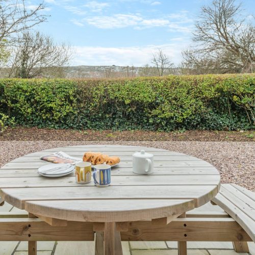 Step through the double doors from the living/dining room and you’ll find a lovely, private front garden – the perfect place to enjoy a glass of wine at the picnic bench while the kids play freely in the spacious enclosed space.